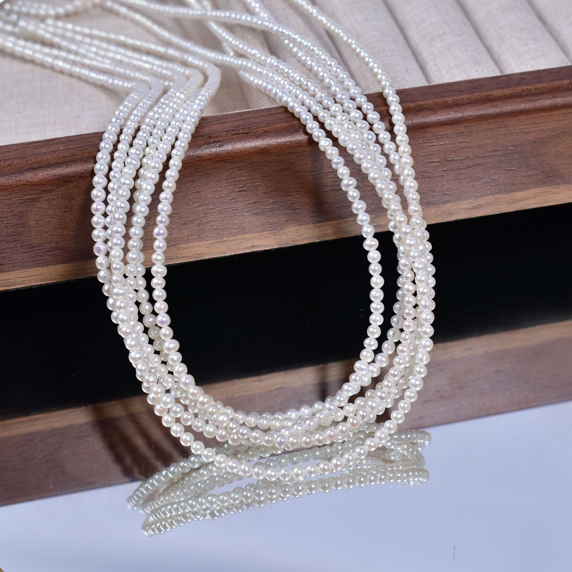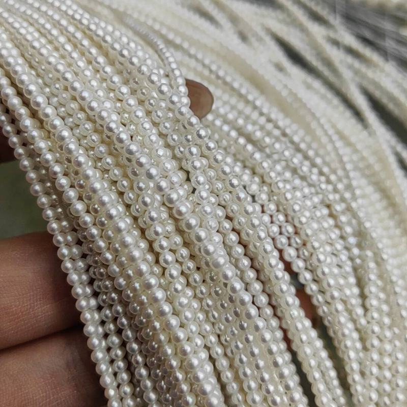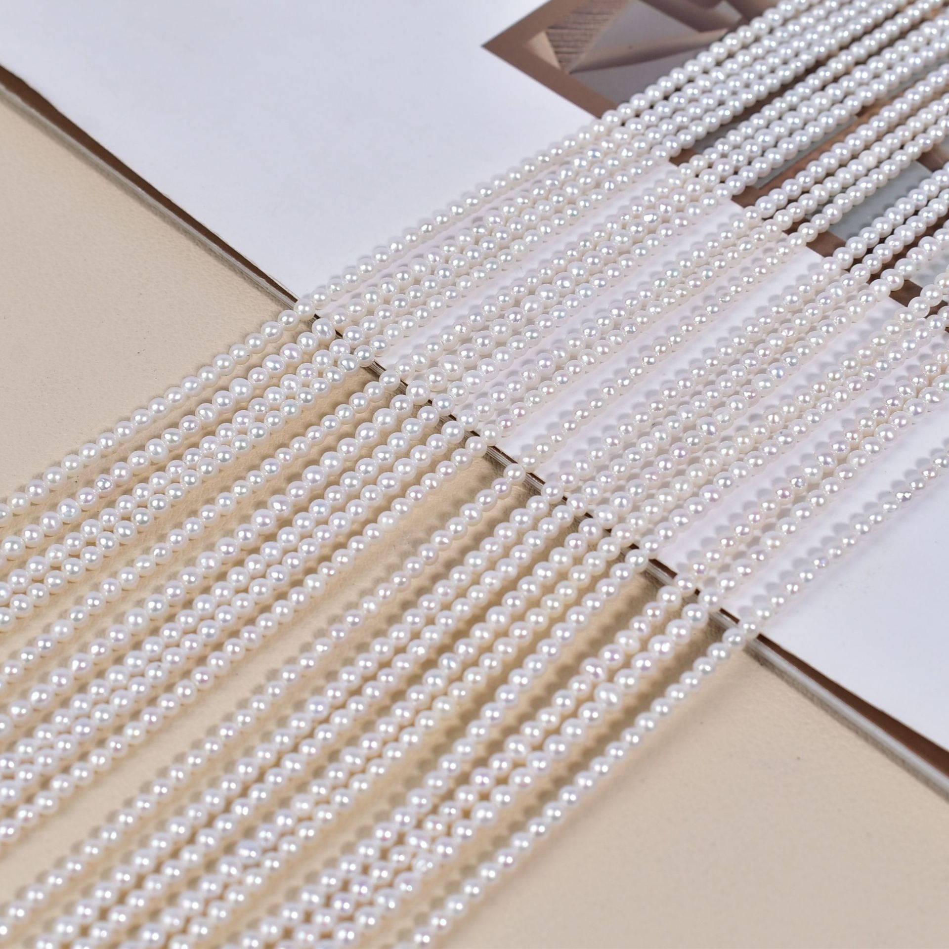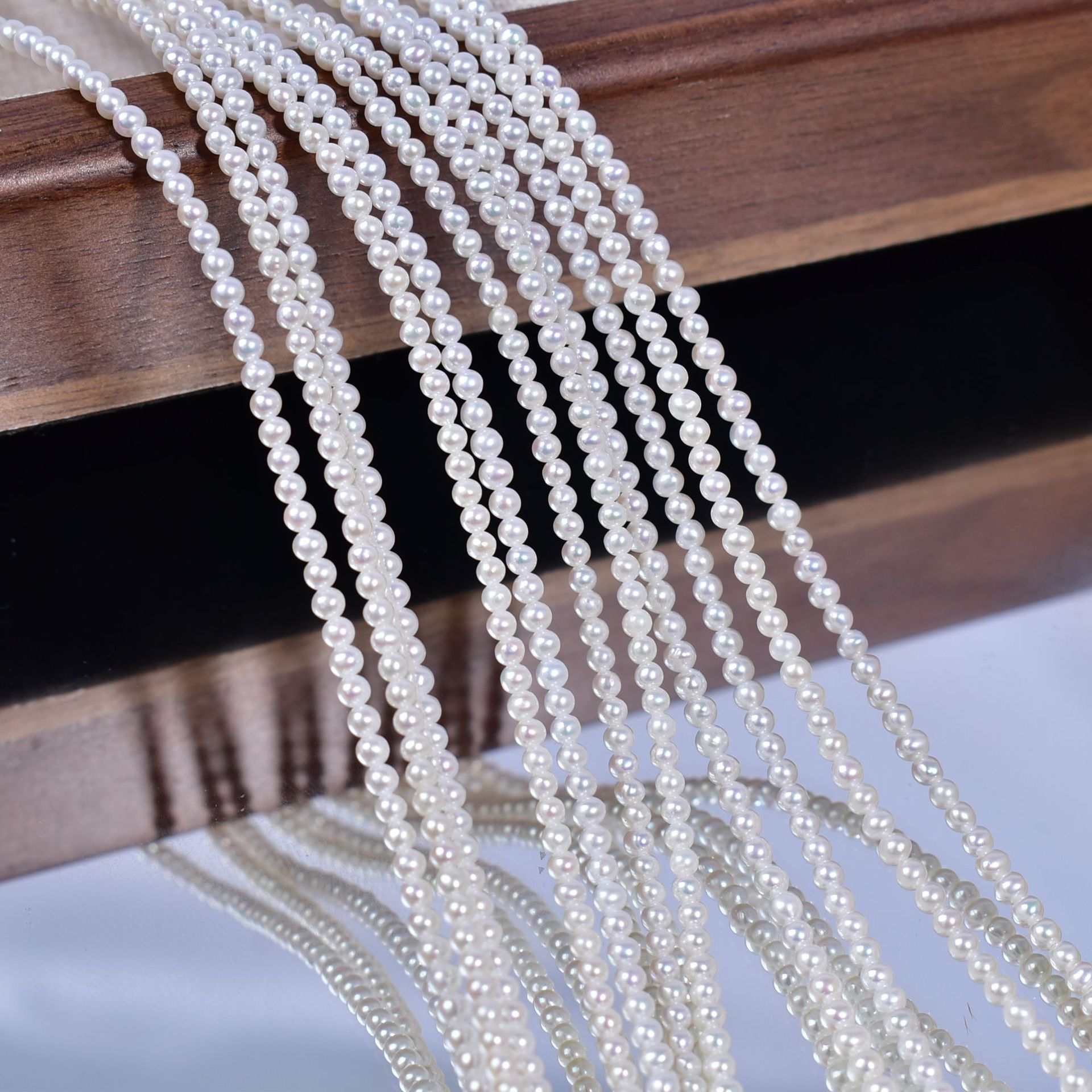 Naturel d'eau douce perles, perle d'eau douce cultivée, Légèrement rond, DIY, blanc, 2-3mm, Longueur:Environ 40 cm, Vendu par brin