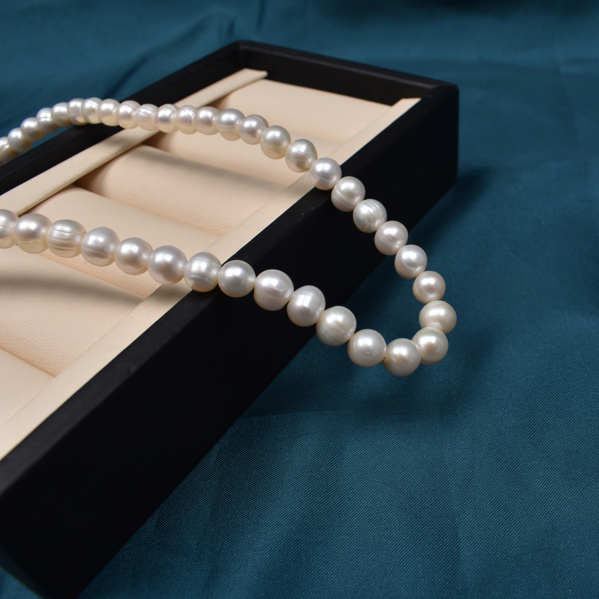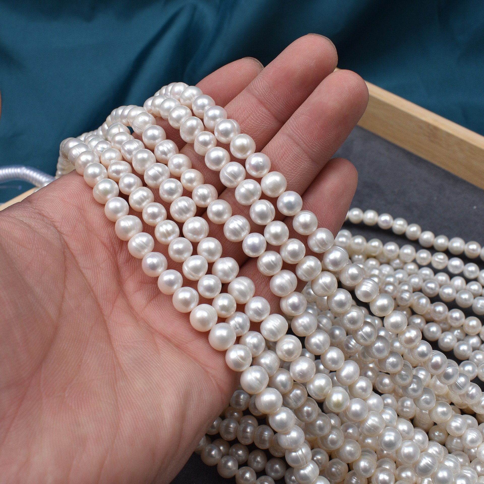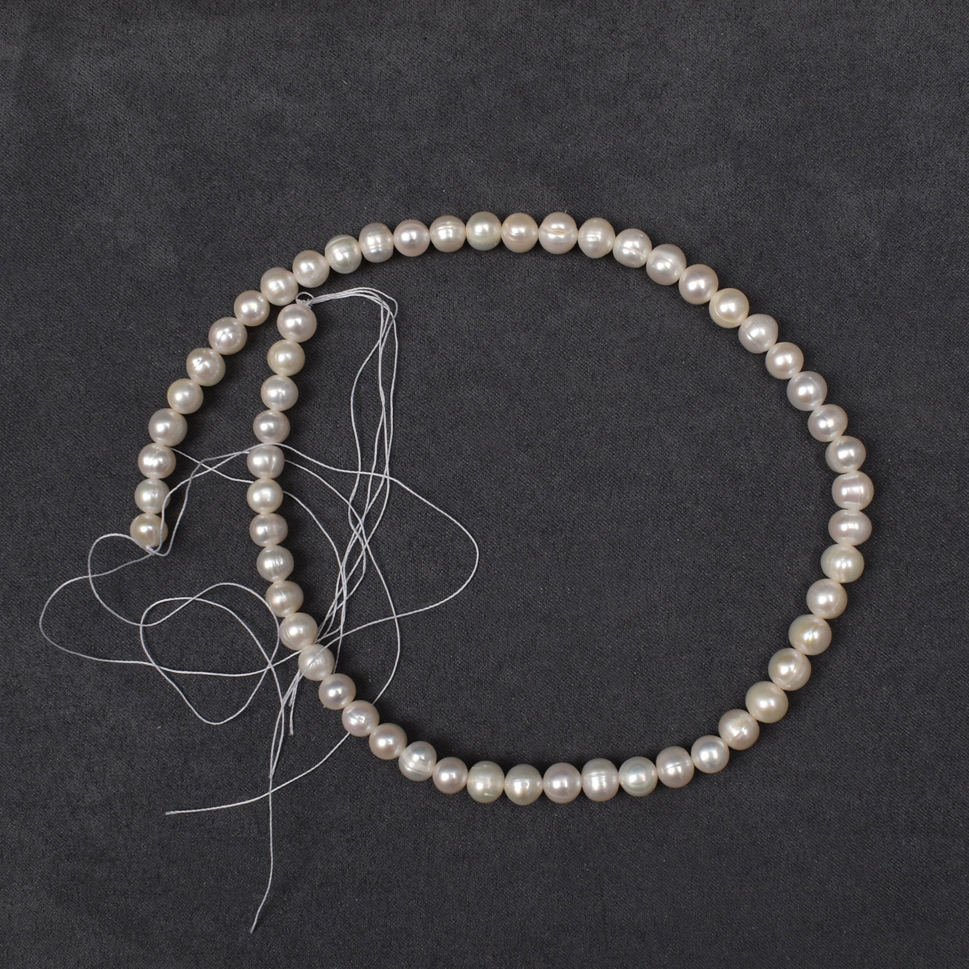 Naturel d'eau douce perles, perle d'eau douce cultivée, Légèrement rond, DIY, blanc, 7x7mm, Longueur:Environ 36 cm, Vendu par brin