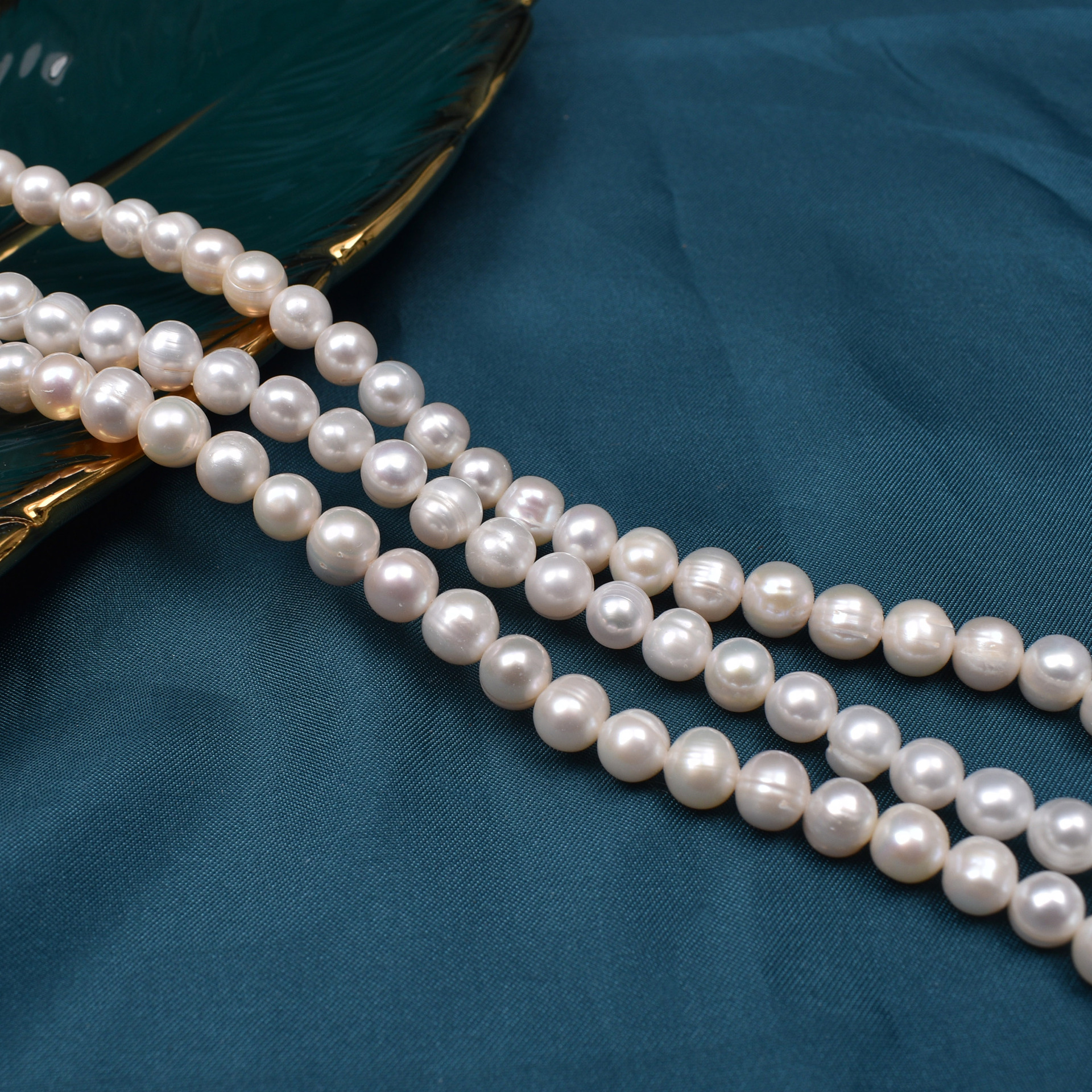 Naturel d'eau douce perles, perle d'eau douce cultivée, pomme de terre, blanc, 7-8mm Environ 0.8mm Vendu par sac