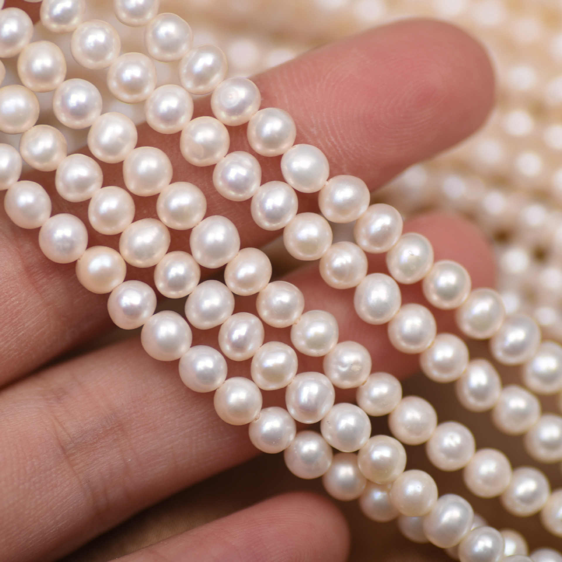 Naturel d'eau douce perles, perle d'eau douce cultivée, Légèrement rond, DIY, blanc, 5-6mm, Longueur:36 cm, Vendu par brin