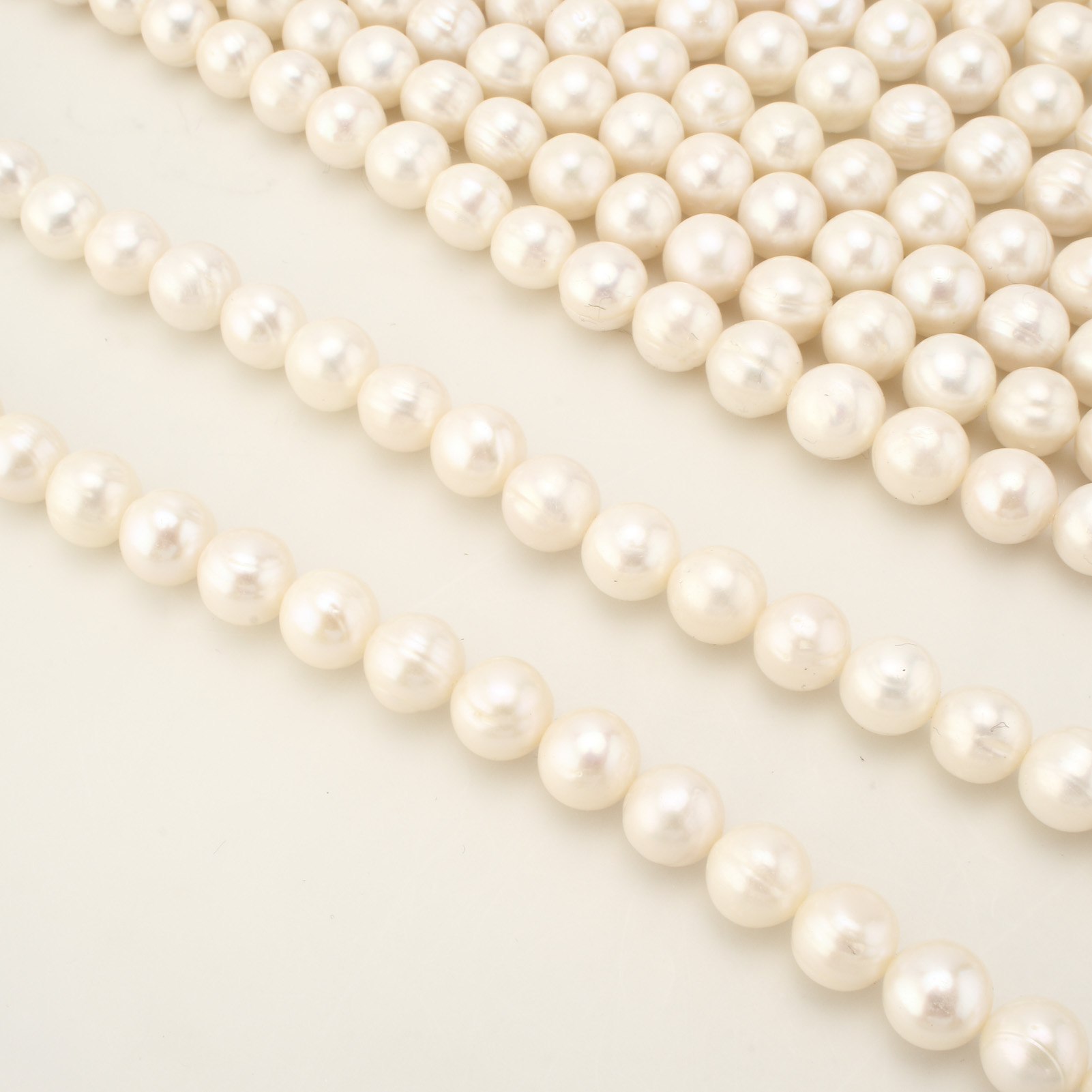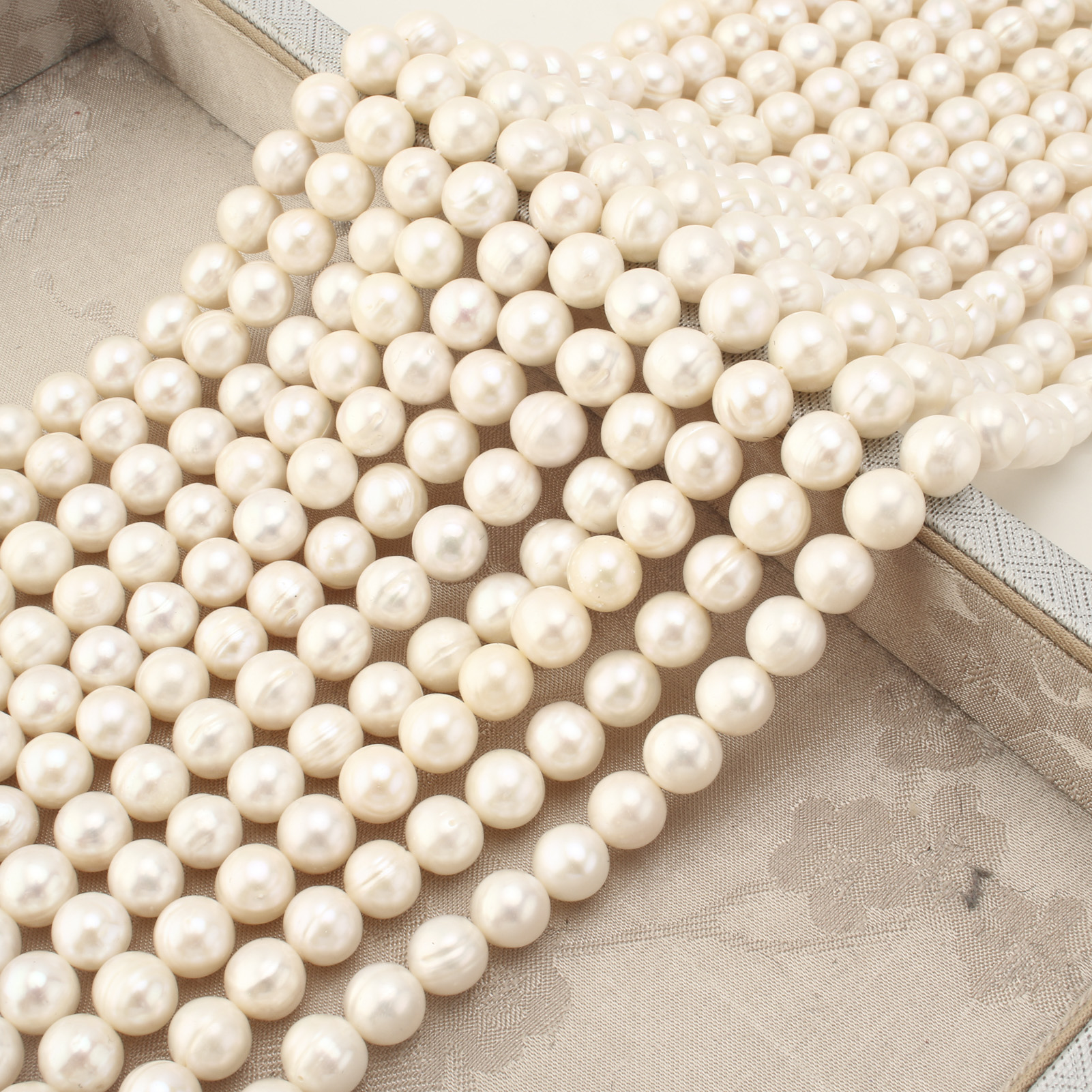 Naturel d'eau douce perles, perle d'eau douce cultivée, Rond, bijoux de mode, blanc, 8-9mm, Longueur:45 cm, Vendu par brin