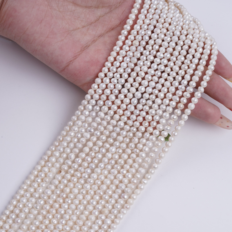 Naturel d'eau douce perles, perle d'eau douce cultivée, Légèrement rond, DIY, plus de couleurs à choisir, 4-5mm, Longueur:38 cm, Vendu par brin