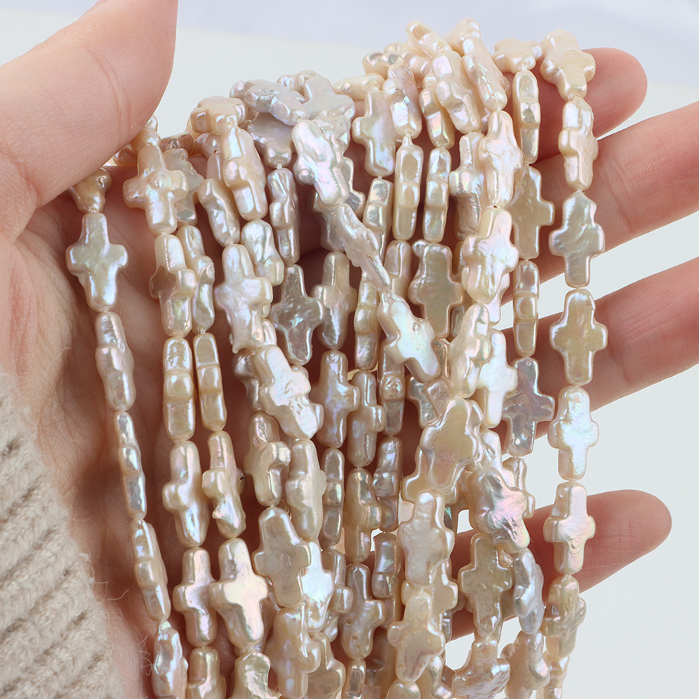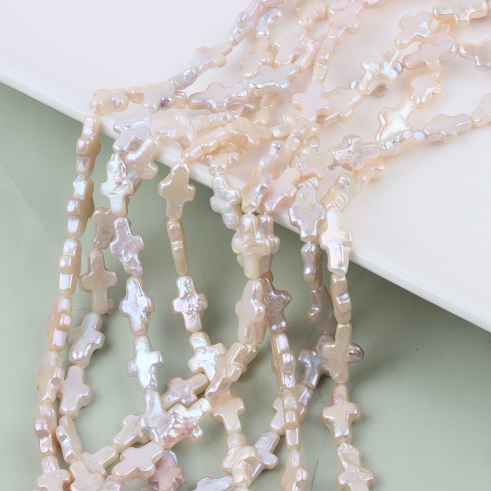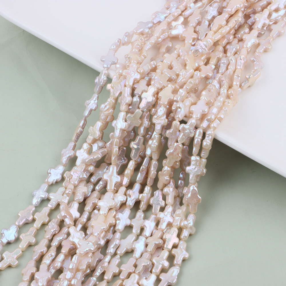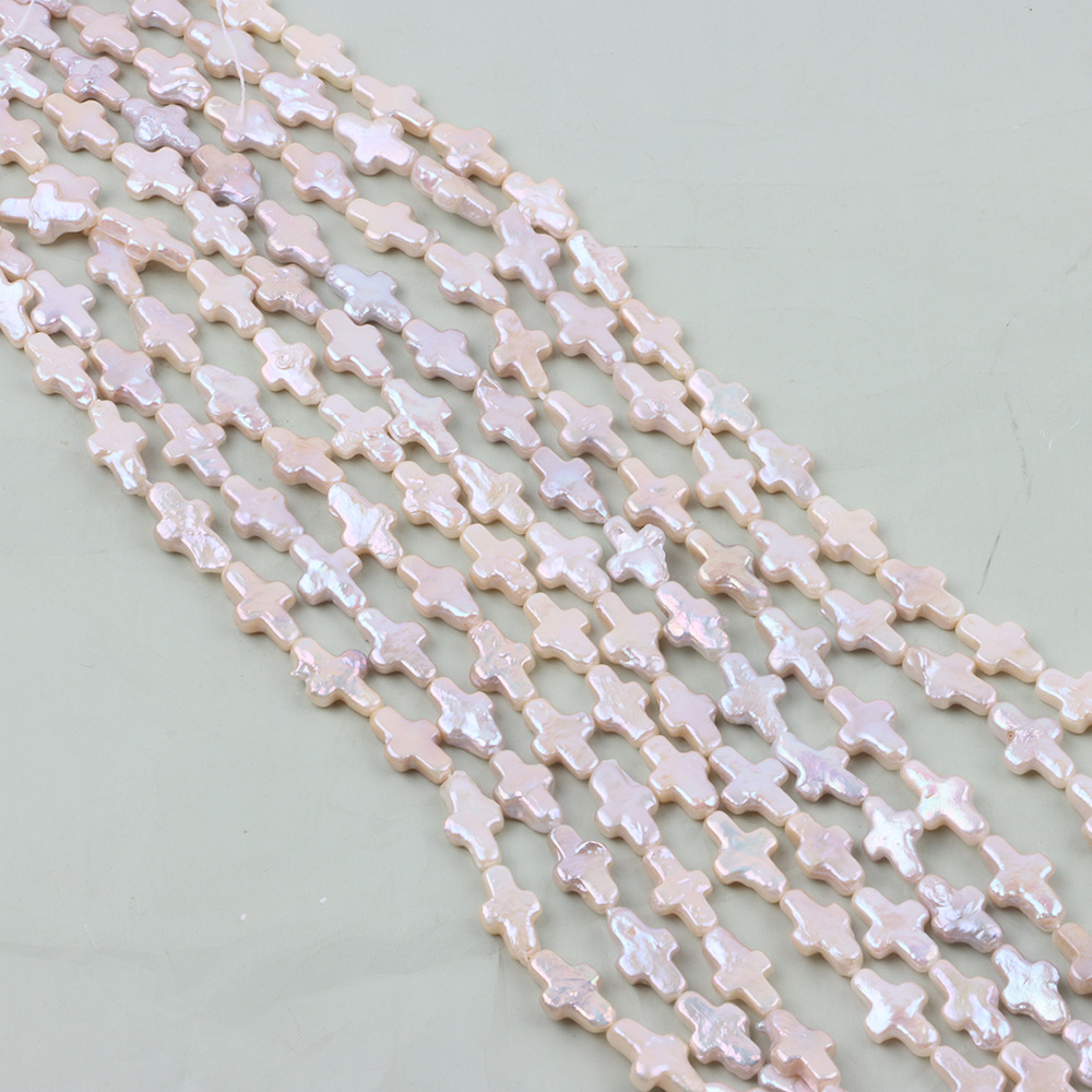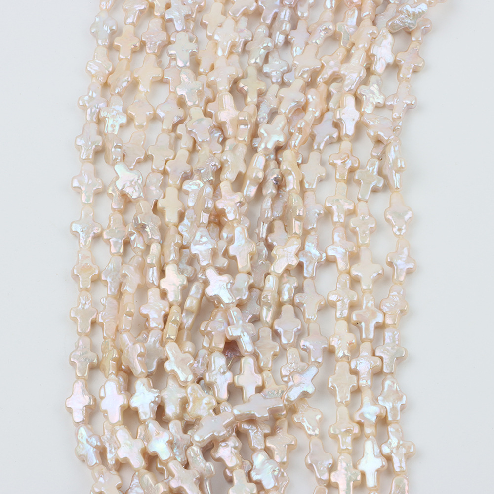 Naturel d'eau douce perles, perle d'eau douce cultivée, croix, DIY, 8x13mm, Longueur:40 cm, Vendu par brin