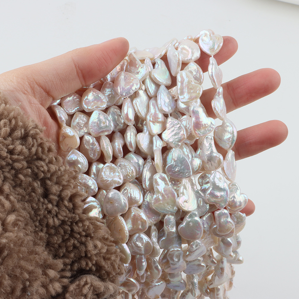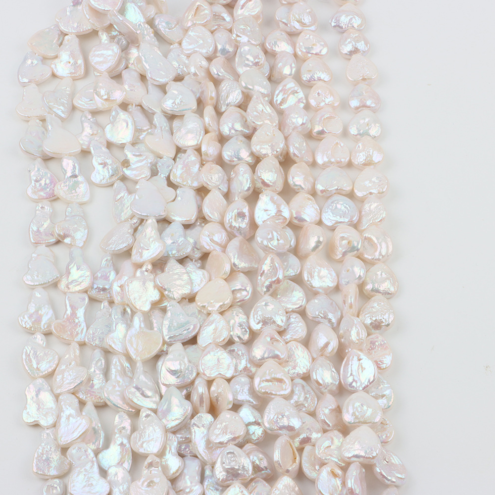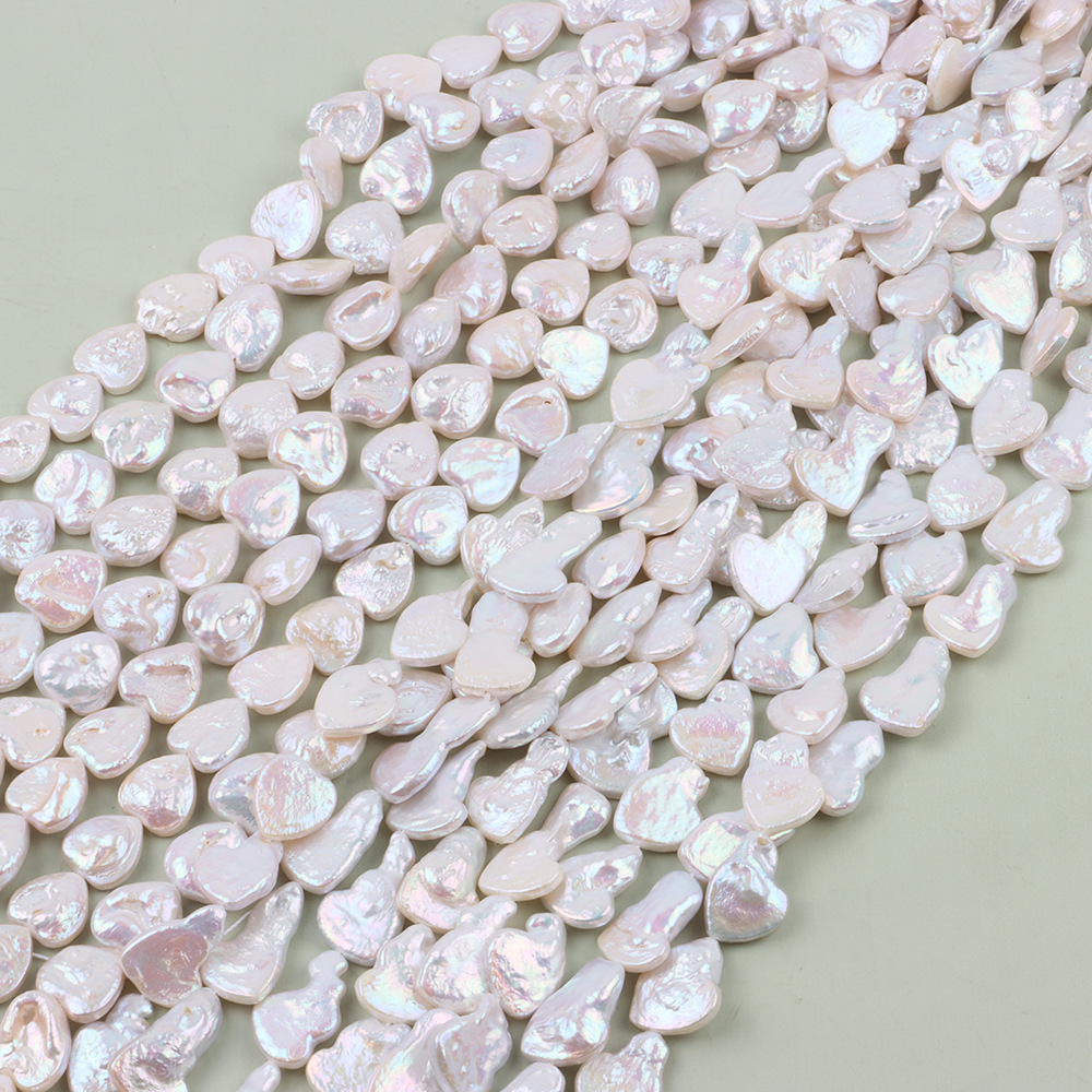 Naturel d'eau douce perles, perle d'eau douce cultivée, coeur, DIY, blanc, About:12-14mm, Longueur:40 cm, Vendu par brin