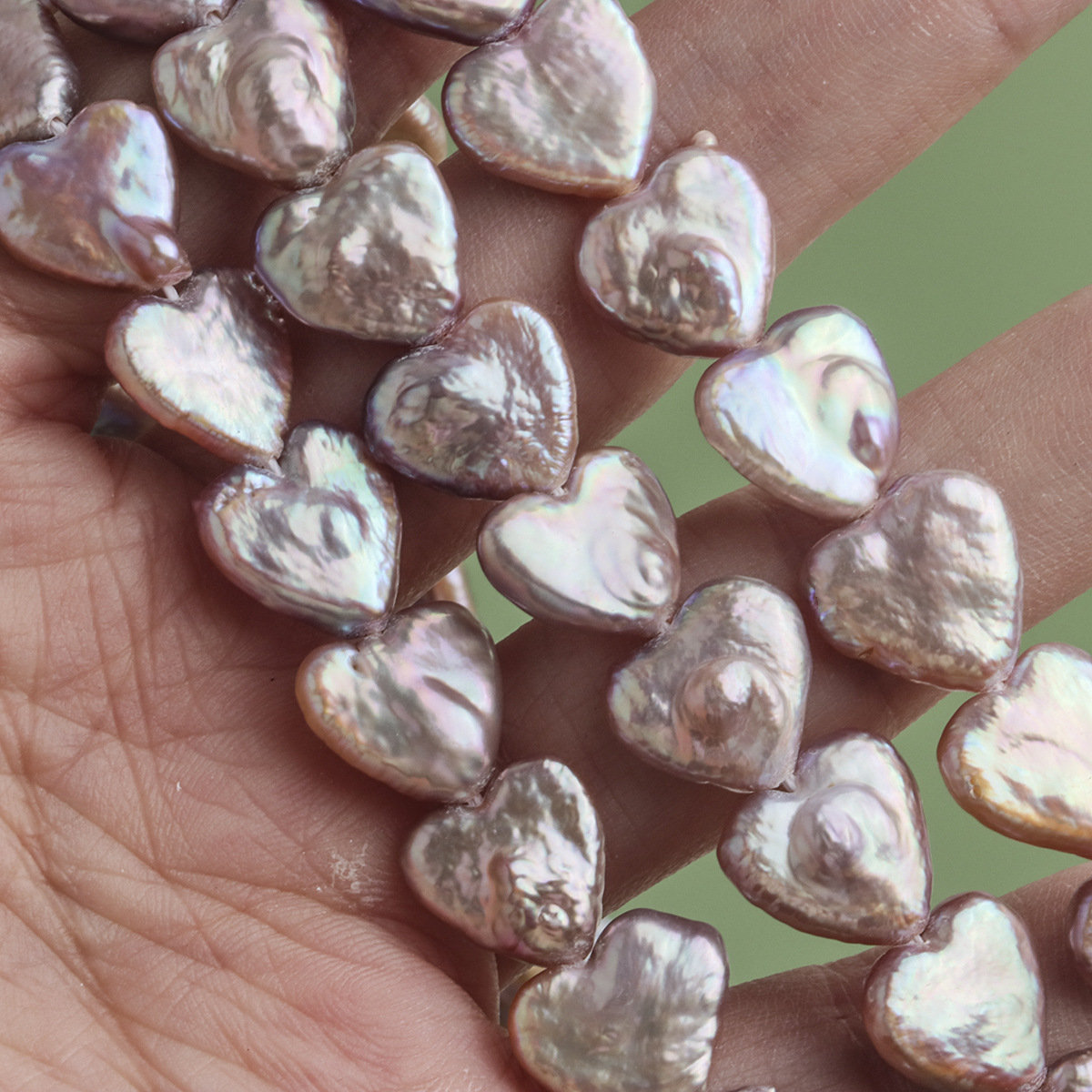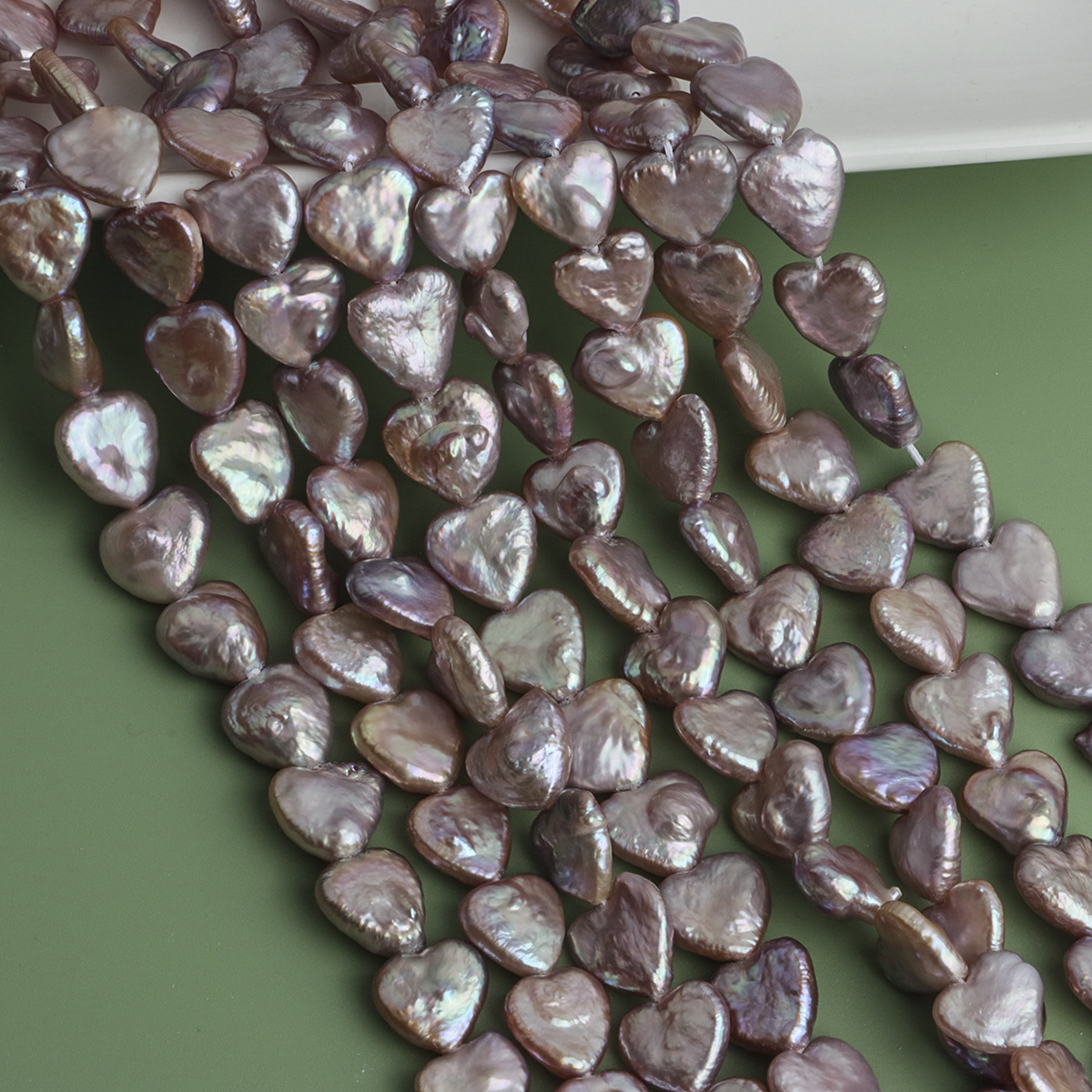 Naturel d'eau douce perles, perle d'eau douce cultivée, coeur, DIY, rose pourpre, About:12-13MM, Longueur:40-41 cm, Vendu par brin