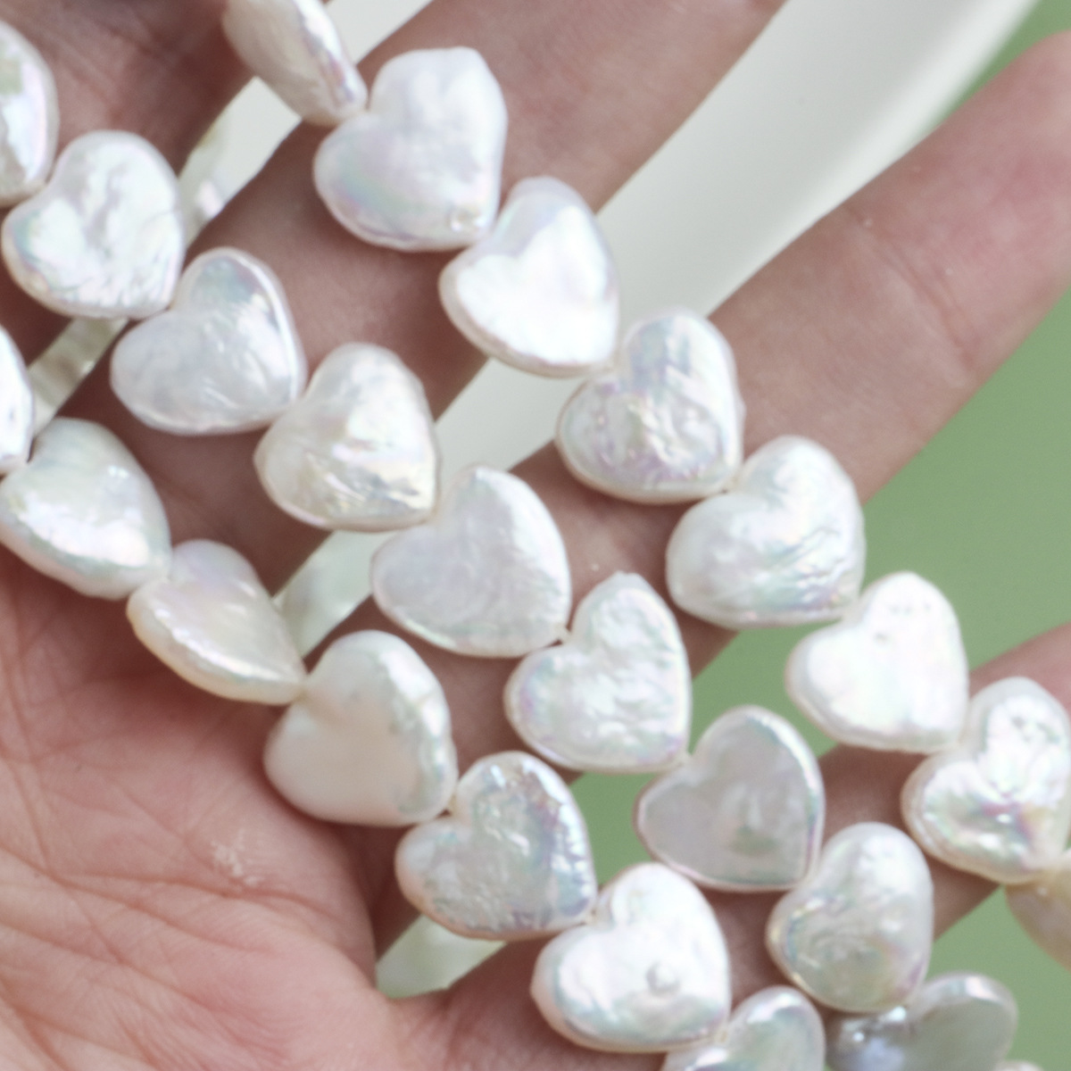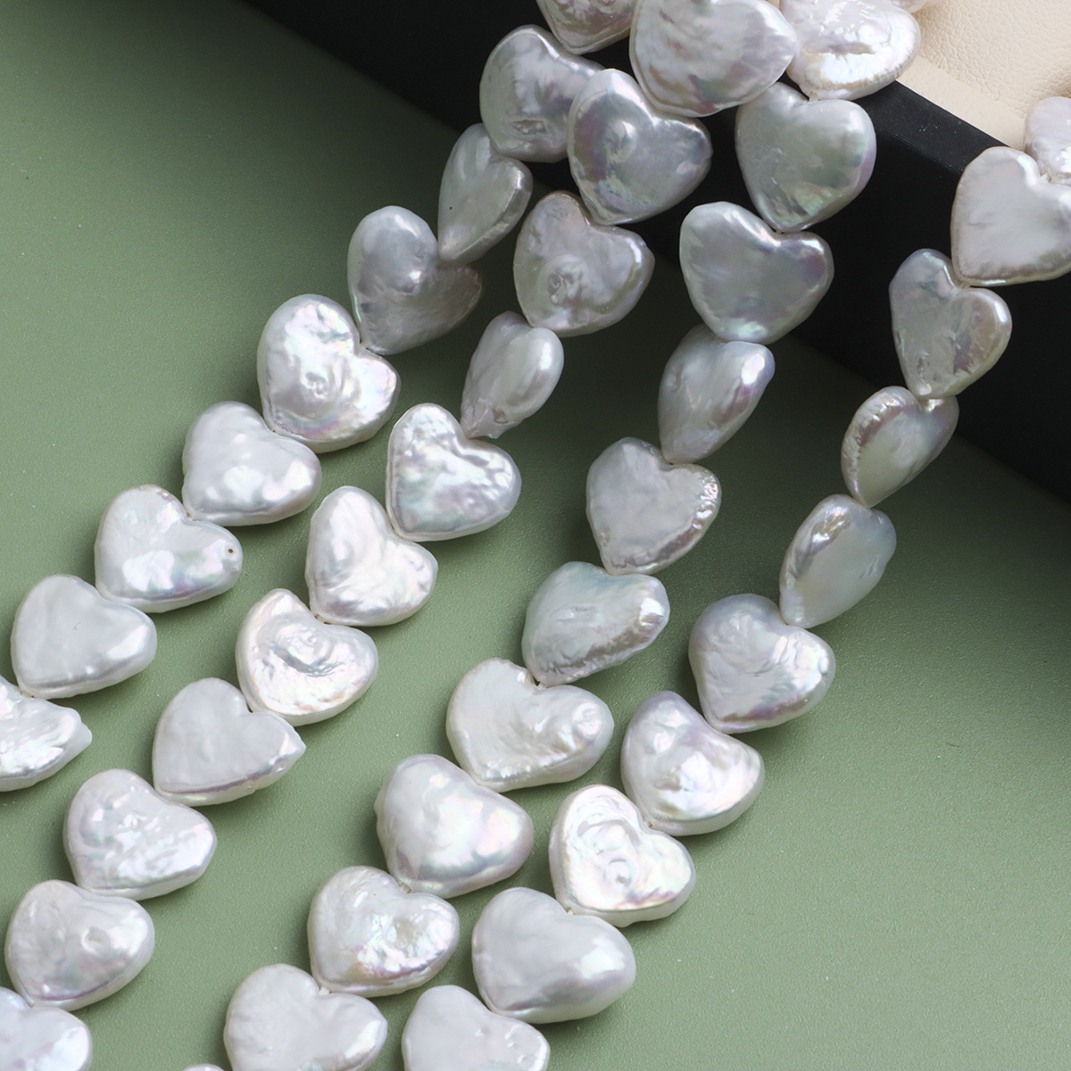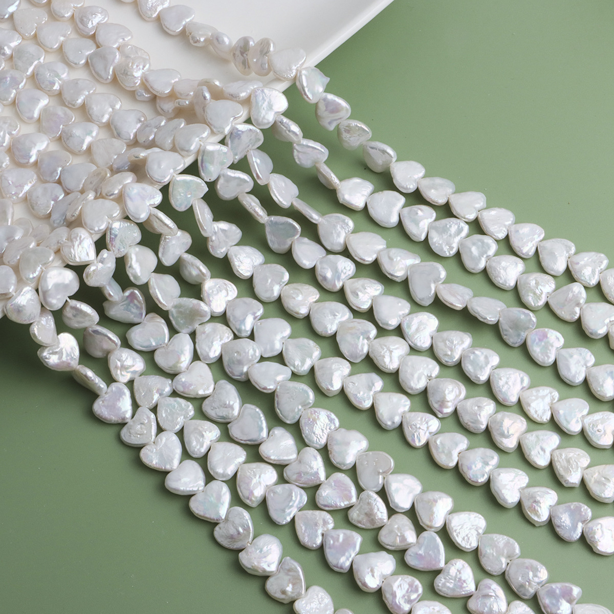 Naturel d'eau douce perles, perle d'eau douce cultivée, coeur, DIY, blanc, About:10-11mm, Longueur:40 cm, Vendu par brin