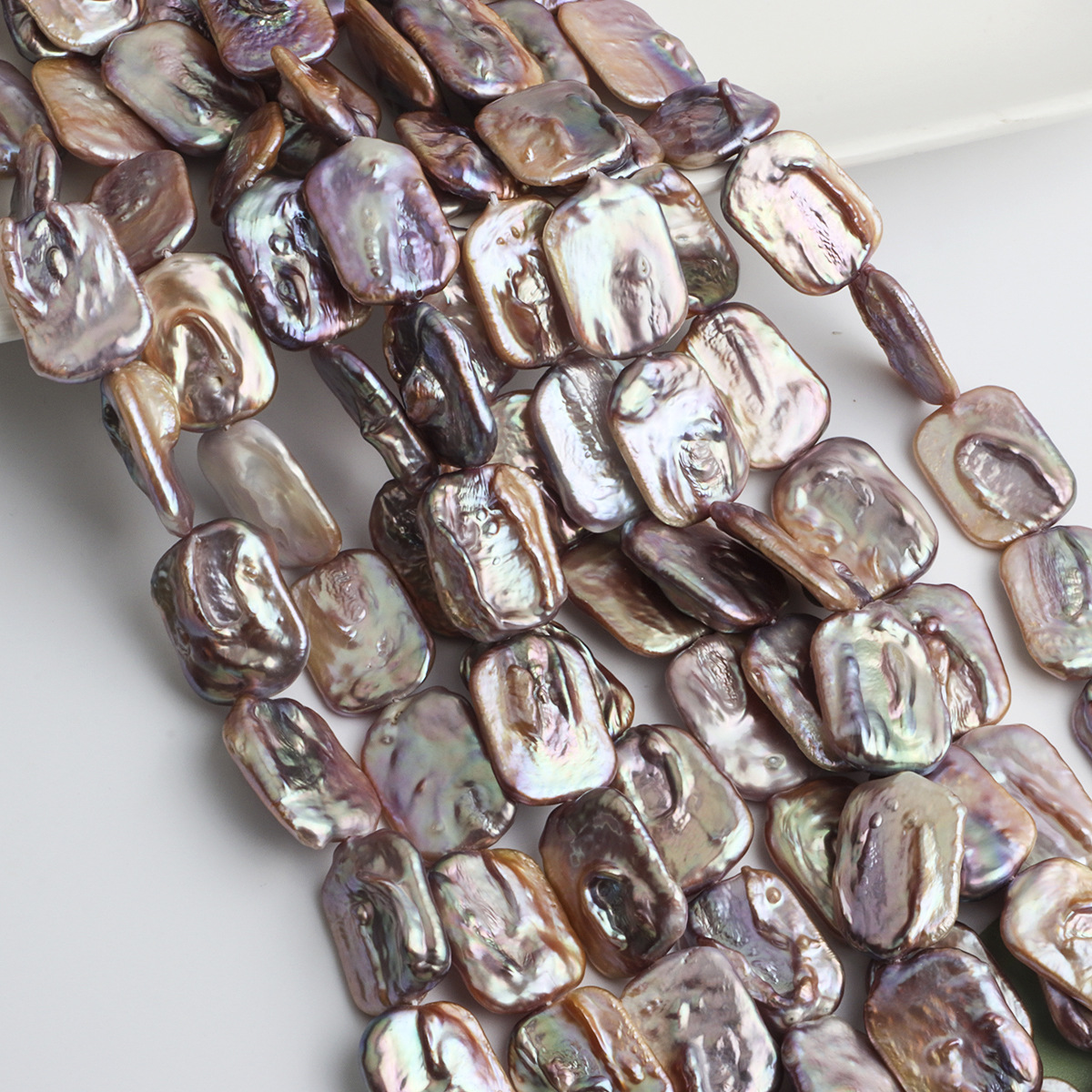 Naturel d'eau douce perles, perle d'eau douce cultivée, cadre, DIY, rose pourpre, 17x26mm, Longueur:40-42 cm, Vendu par brin