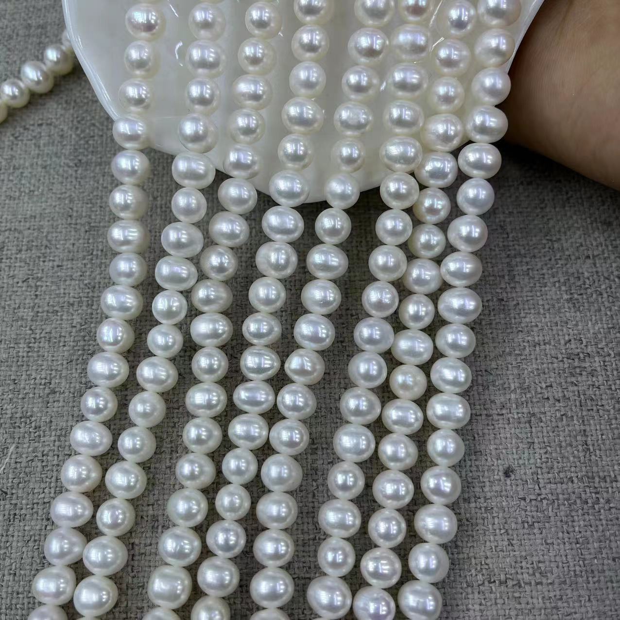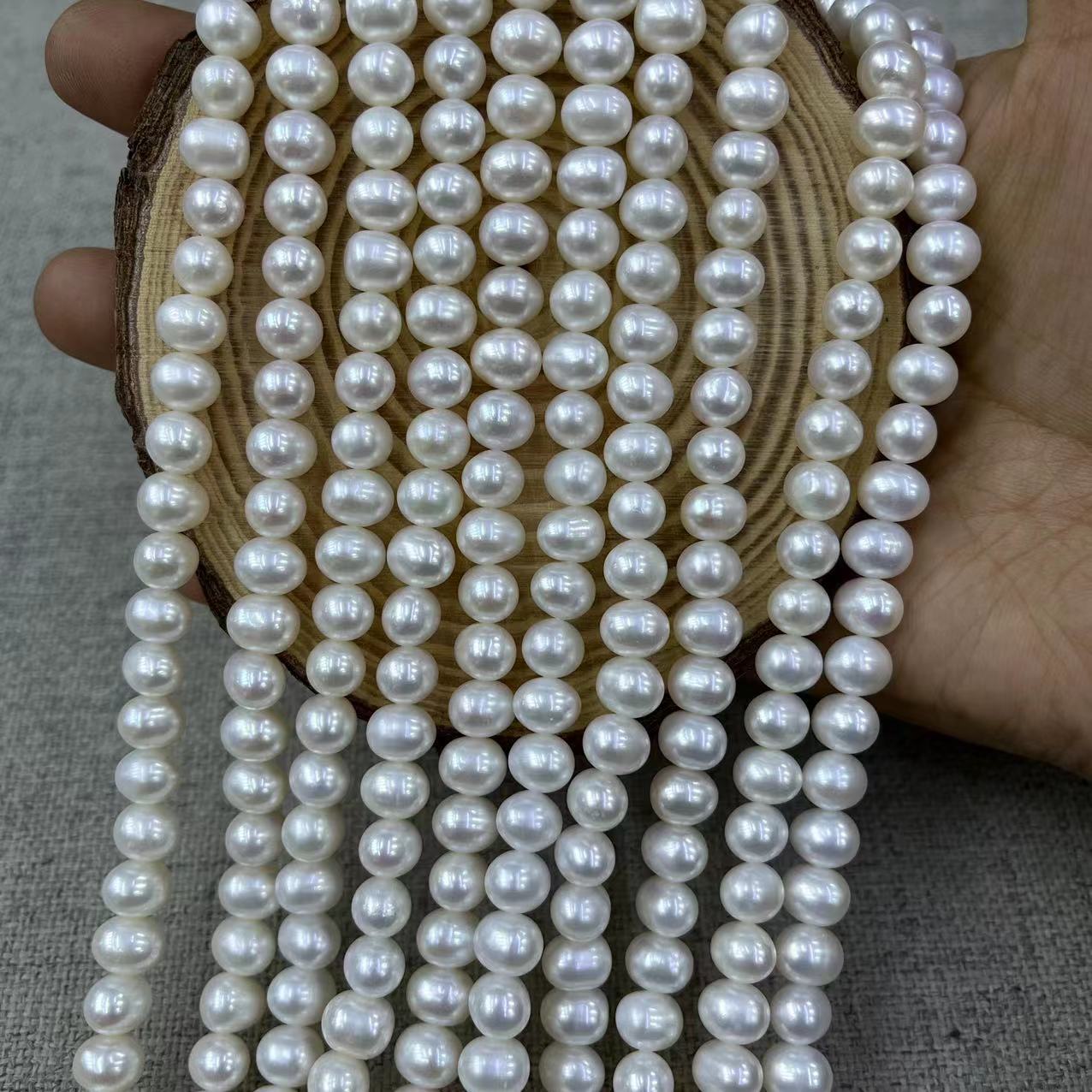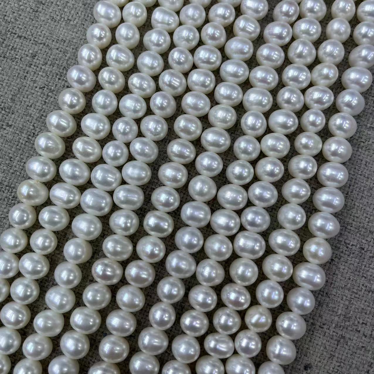 Naturel d'eau douce perles, perle d'eau douce cultivée, pomme de terre, blanc, 7-8mm Environ 0.8mm Vendu par sac