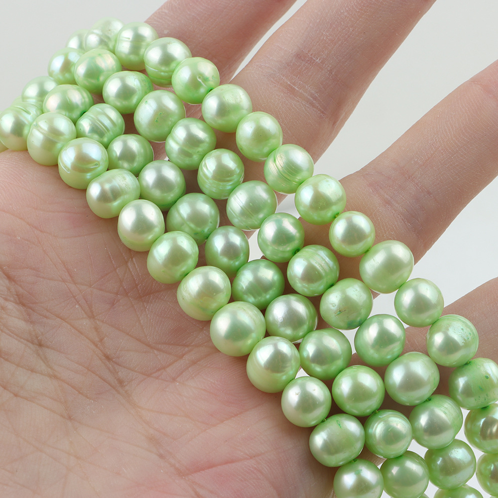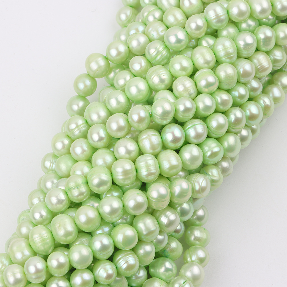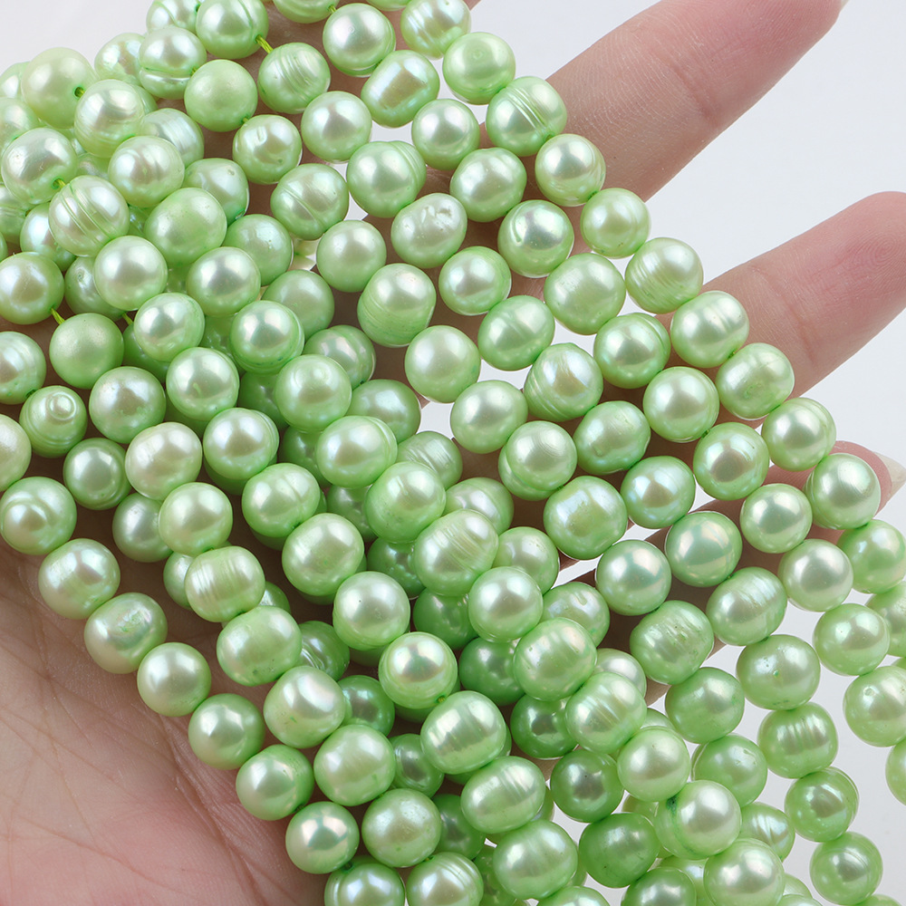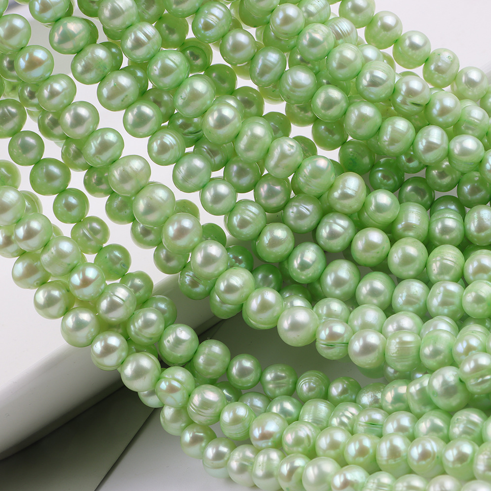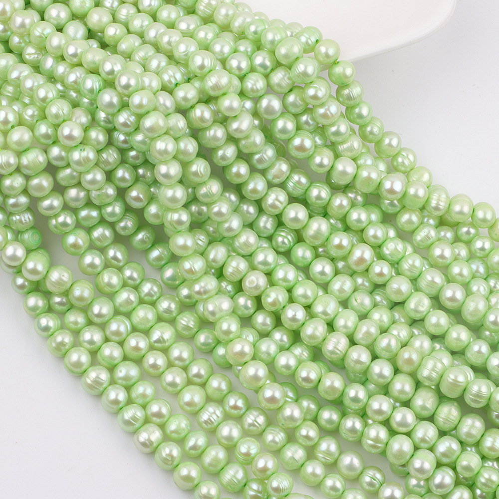 Naturel d'eau douce perles, perle d'eau douce cultivée, Légèrement rond, DIY, vert, About:6-7mm, Vendu par brin