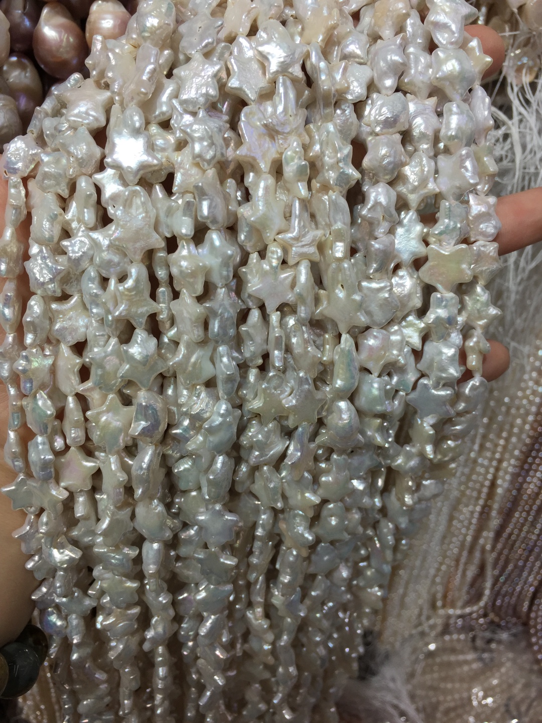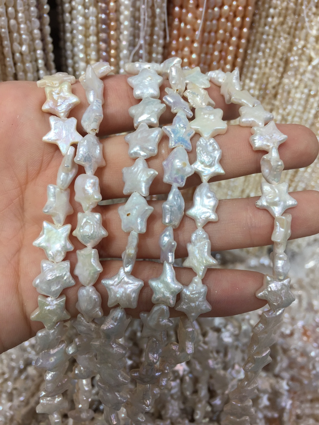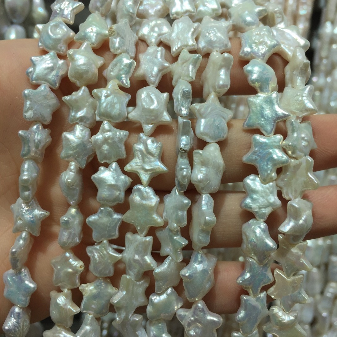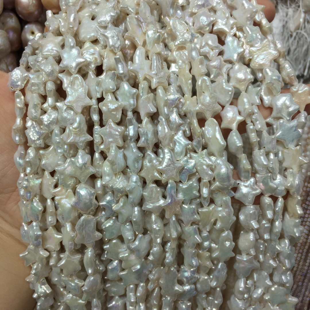 Naturel d'eau douce perles, perle d'eau douce cultivée, étoile, DIY, blanc, About:12-14mm, Vendu par brin