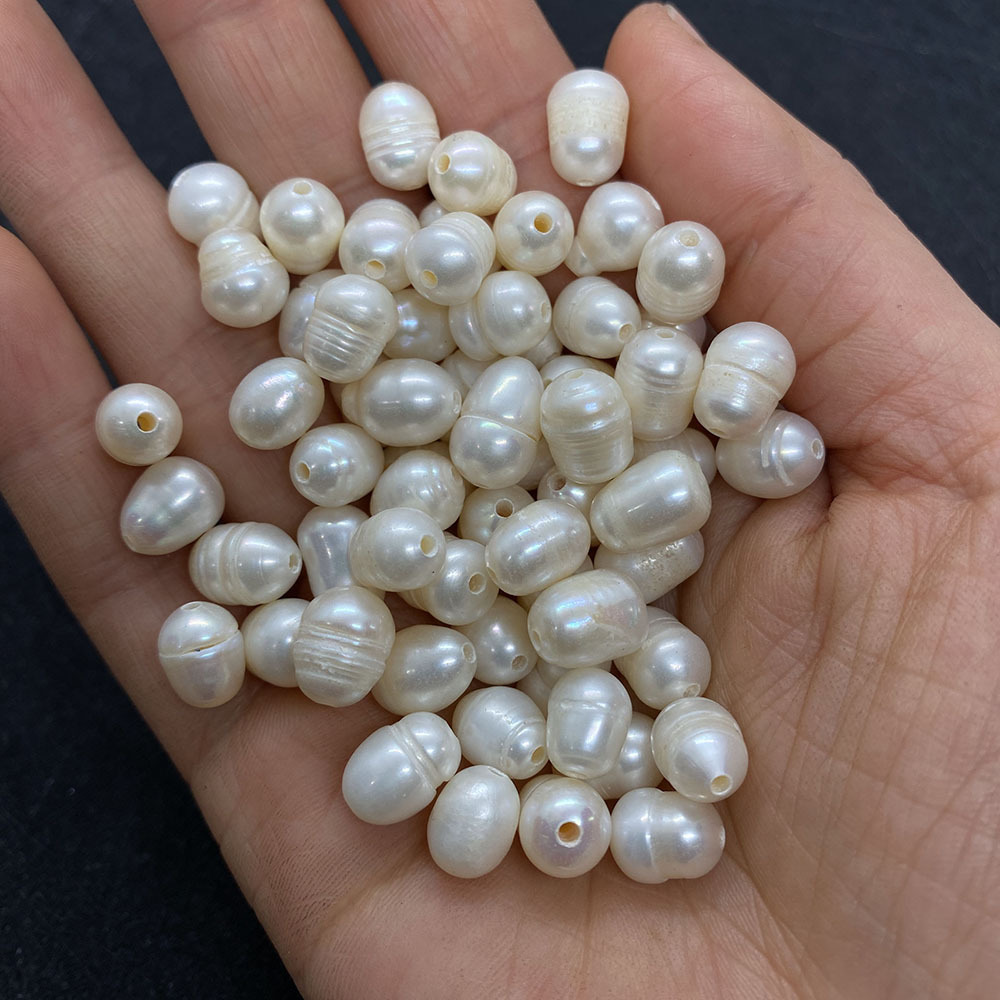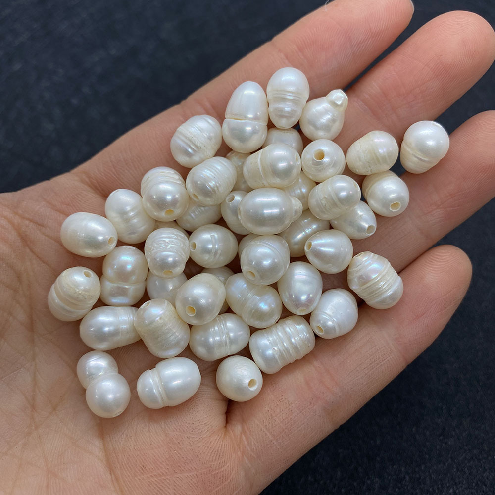 Naturel d'eau douce perles, perle d'eau douce cultivée, pomme de terre, blanc, 7-8mm Environ 0.8mm Vendu par sac