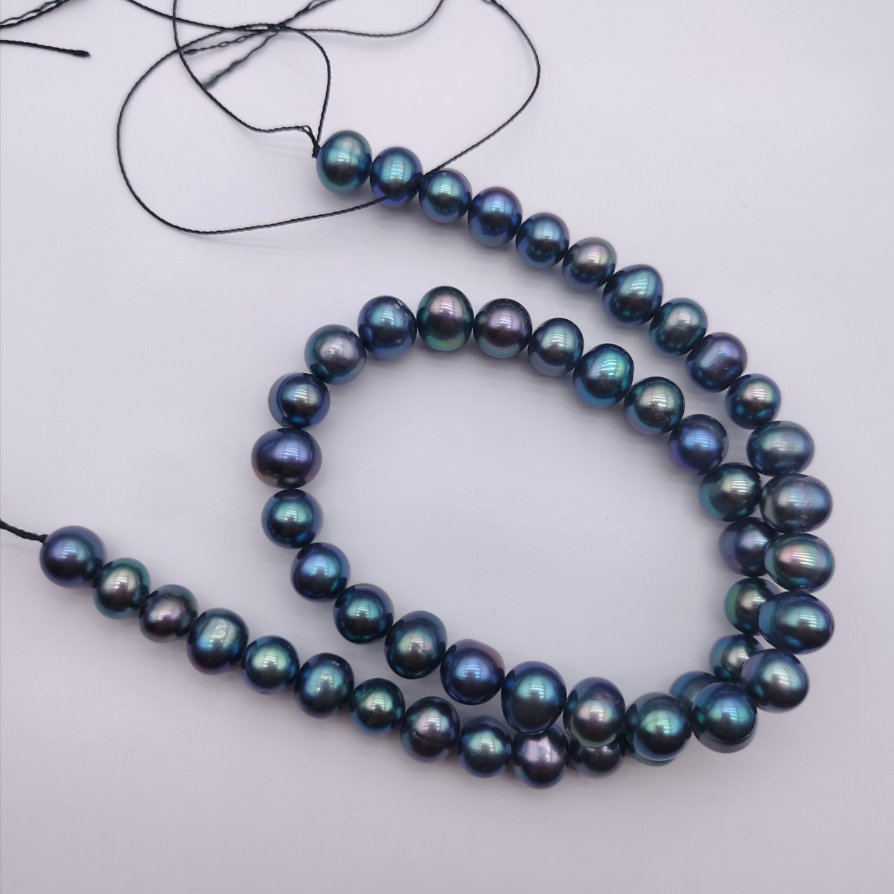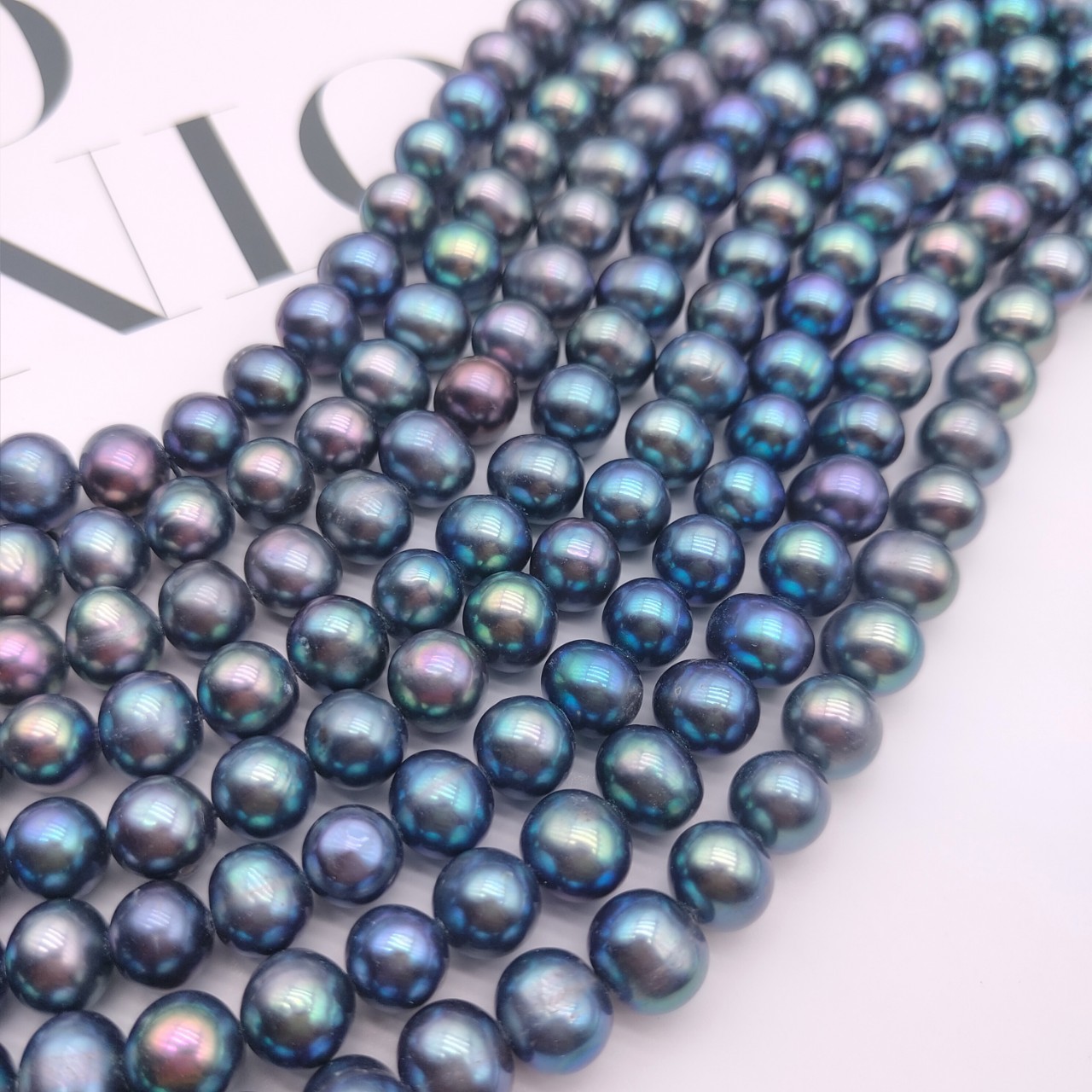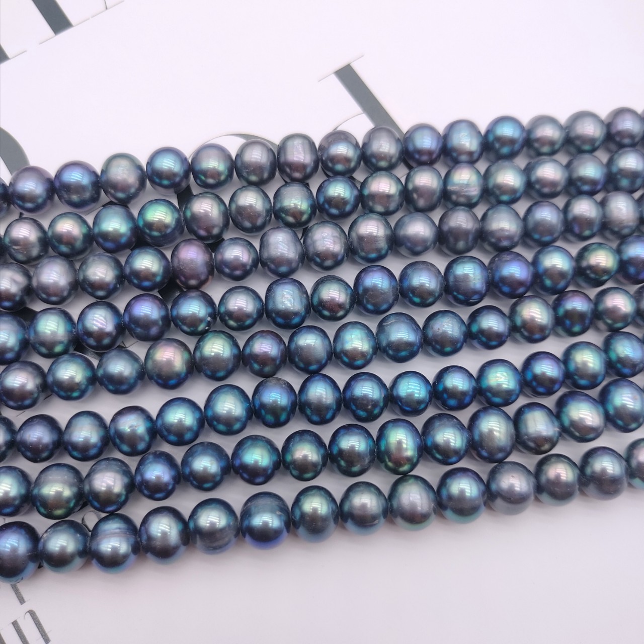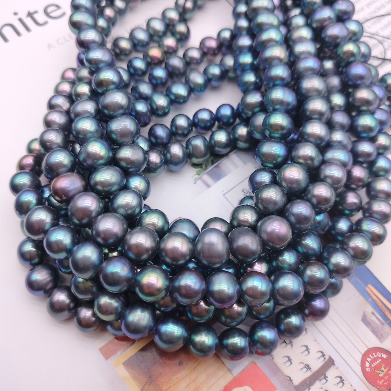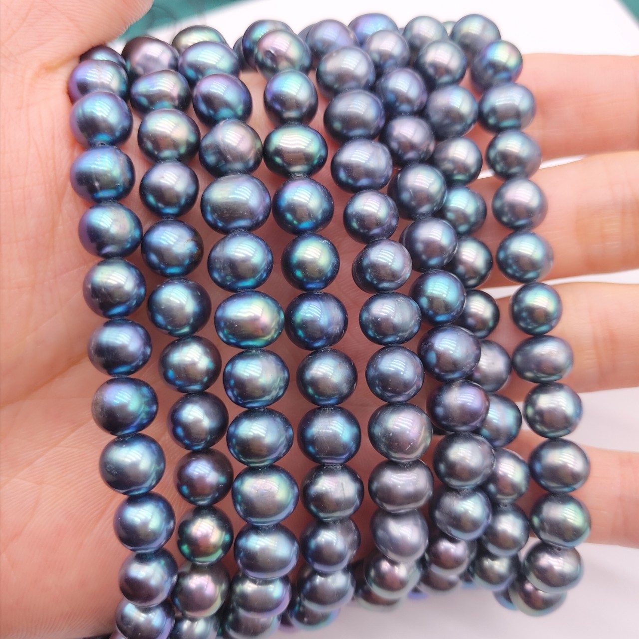 Naturel d'eau douce perles, perle d'eau douce cultivée, Légèrement rond, DIY, noire, 9x10mm, 51PC/brin, Vendu par brin