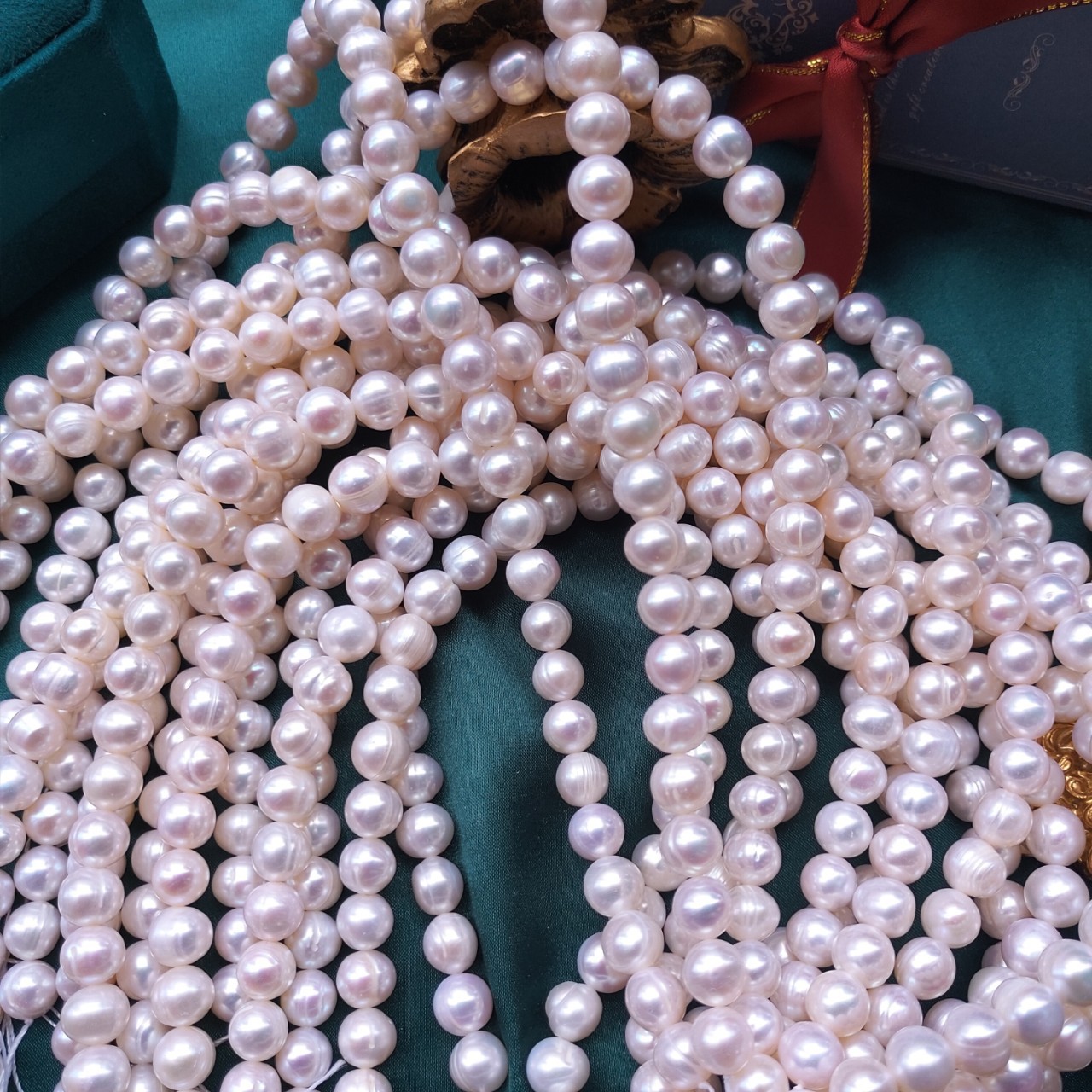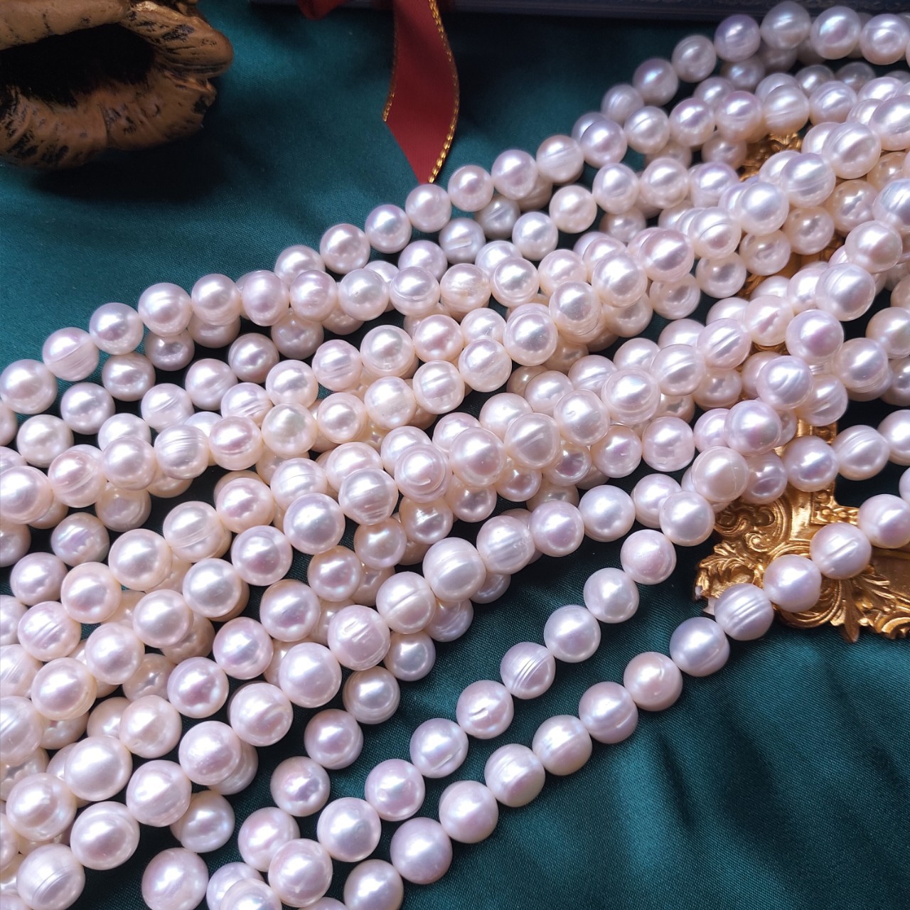 Naturel d'eau douce perles, perle d'eau douce cultivée, Légèrement rond, DIY, blanc, 8x9mm, 42PC/brin, Vendu par brin