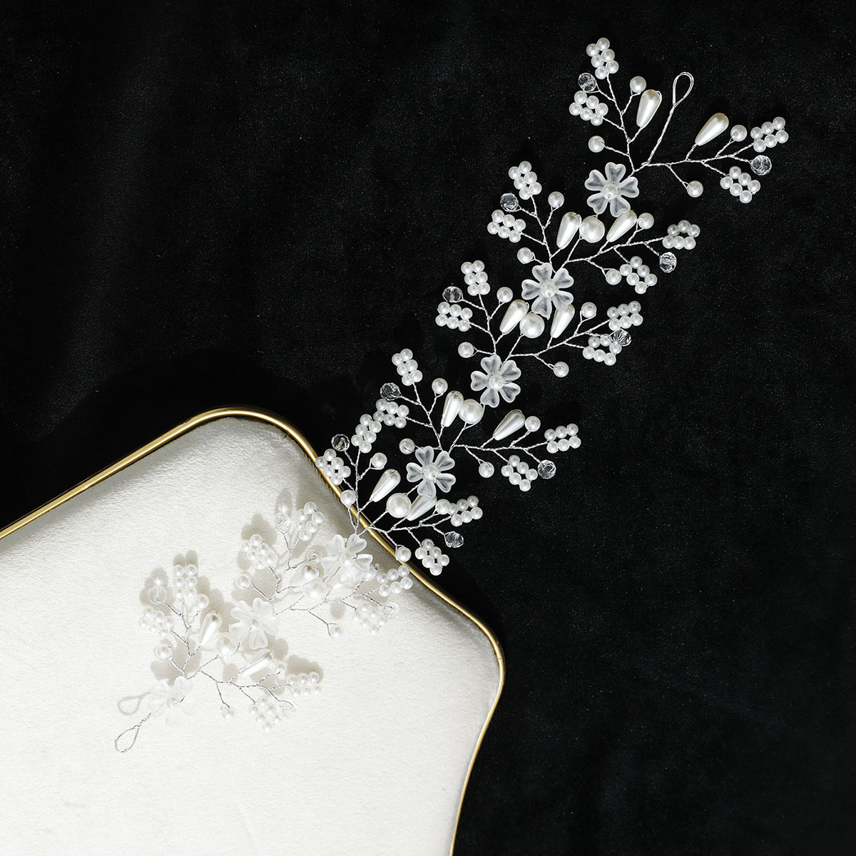 Nuptiale Couronne cheveux, perle de plastique, avec fil en laiton & cristal, fait à la main, bijoux de mode & pour femme, argent, 290x70mm, Vendu par PC
