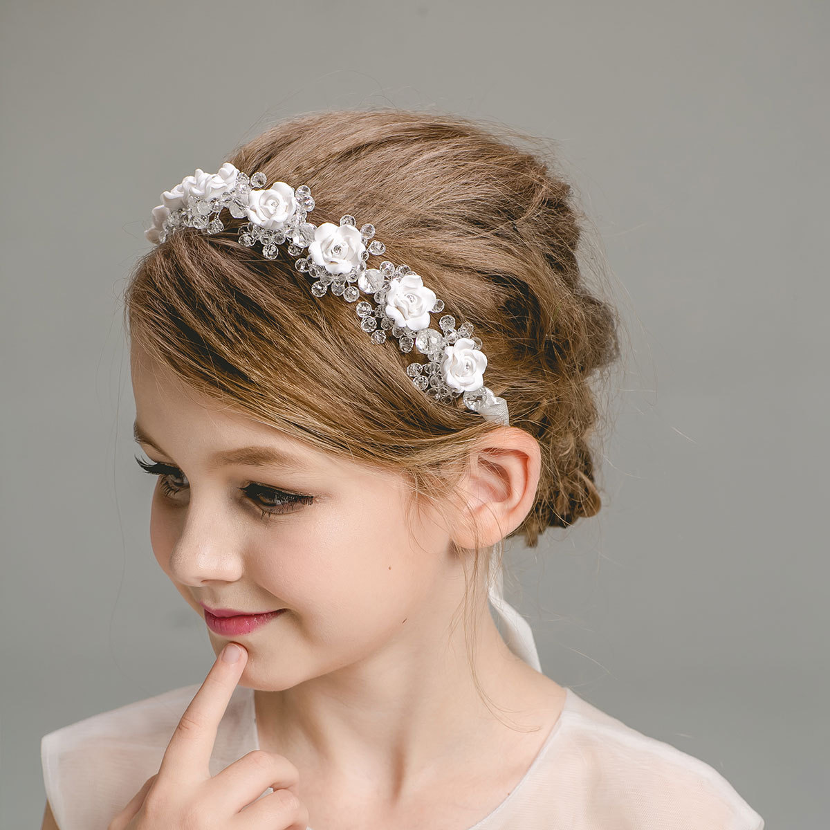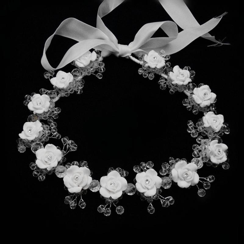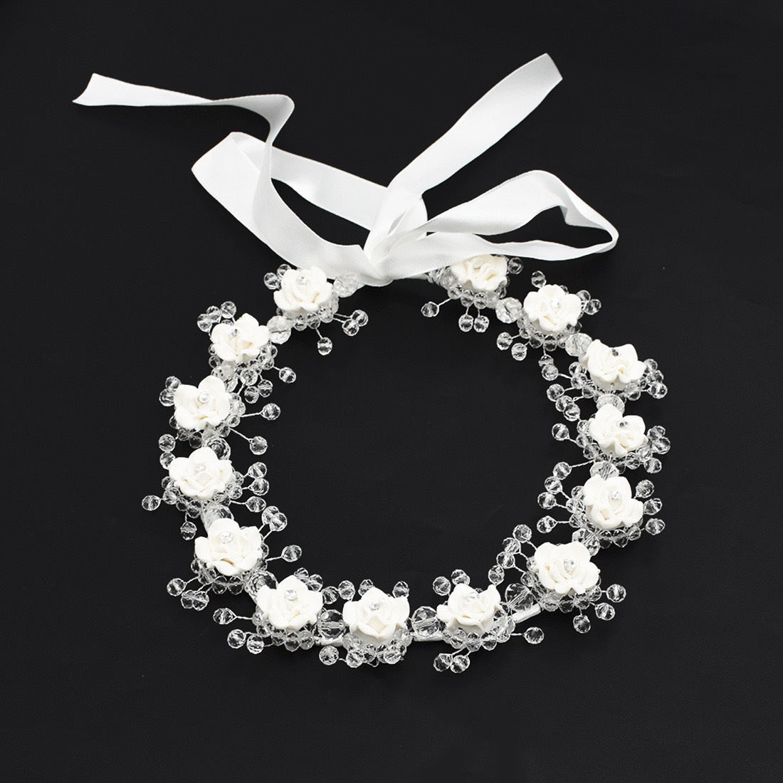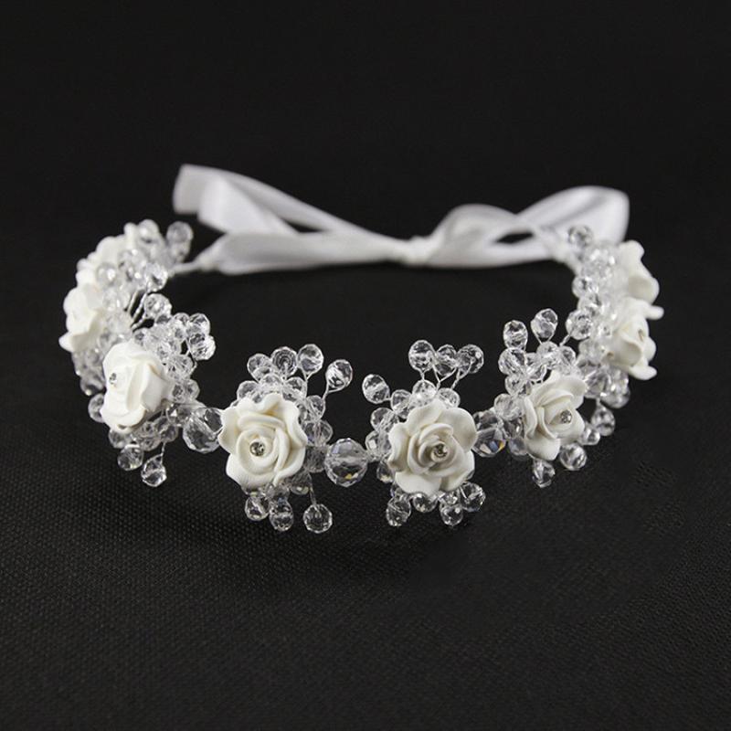 Nuptiale Couronne cheveux, argile de polymère, avec fil en laiton & cristal, fait à la main, bijoux de mode & pour femme, argent, 470x40x40mm, Vendu par PC