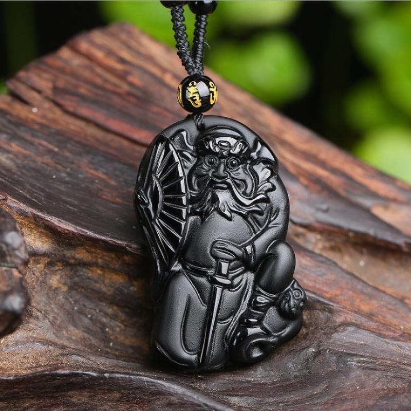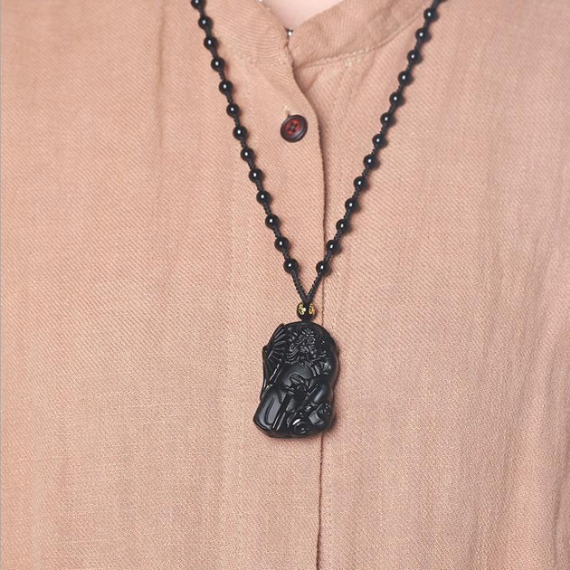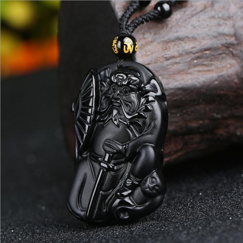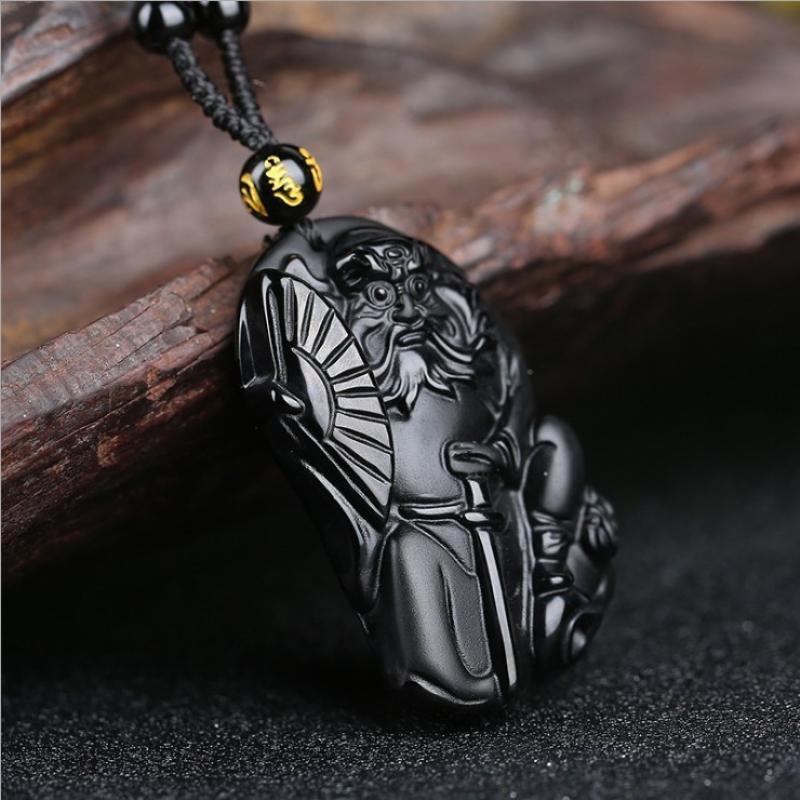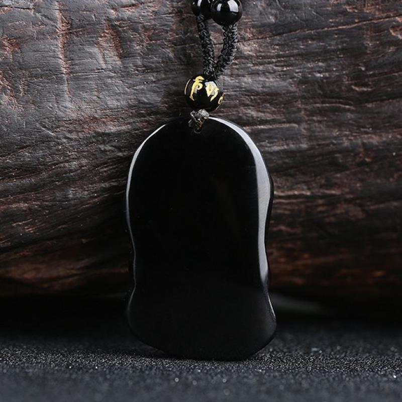 Obsidienne collier, poli, naturel & sculpté & pour homme, noire, 52x34mm, Longueur:Environ 38 cm, Vendu par PC