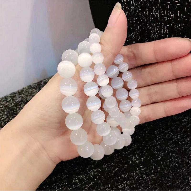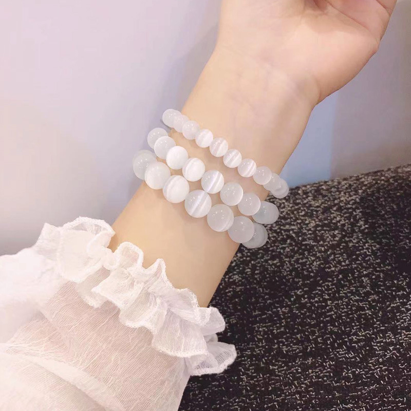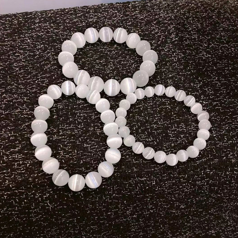 Oeil de chat bracelet, Rond, fait à la main, normes différentes pour le choix & pour femme, blanc, Longueur:Environ 6.5 pouce, Vendu par PC