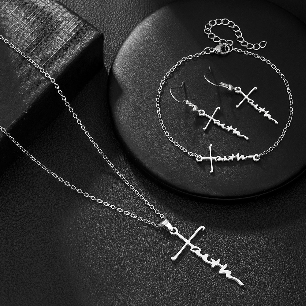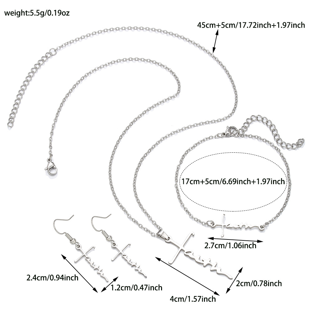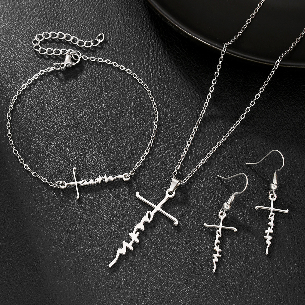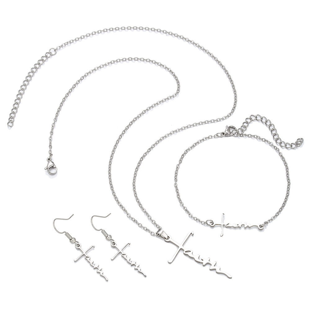 Parures de bijoux en acier inoxydable Saint, Acier inoxydable 304, croix, Placage de couleur argentée, trois pièces & bijoux de mode, argent, Vendu par fixé