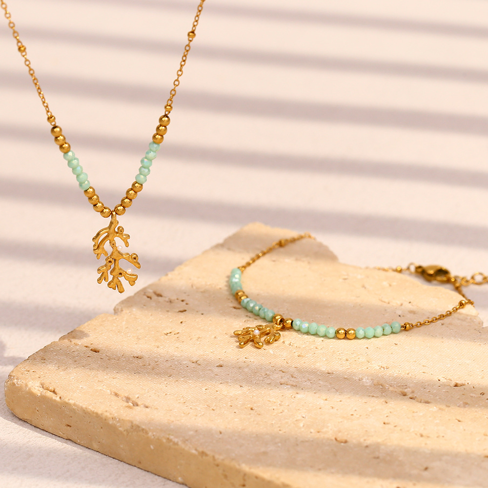 Parures de bijoux en acier inoxydable, Acier inoxydable 304, avec Pierre naturelle, Plaqué or 18K, bijoux de mode & styles différents pour le choix & pour femme, Vendu par PC