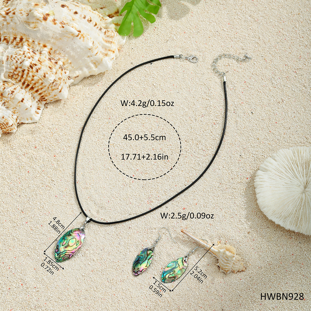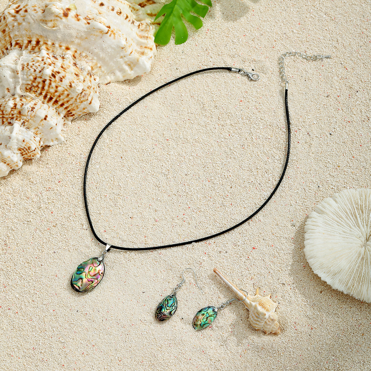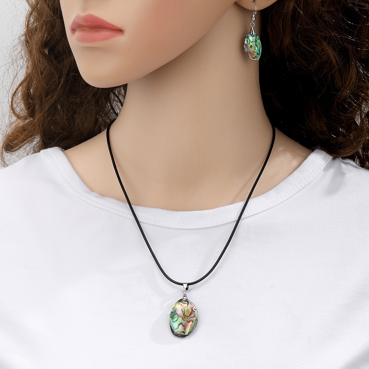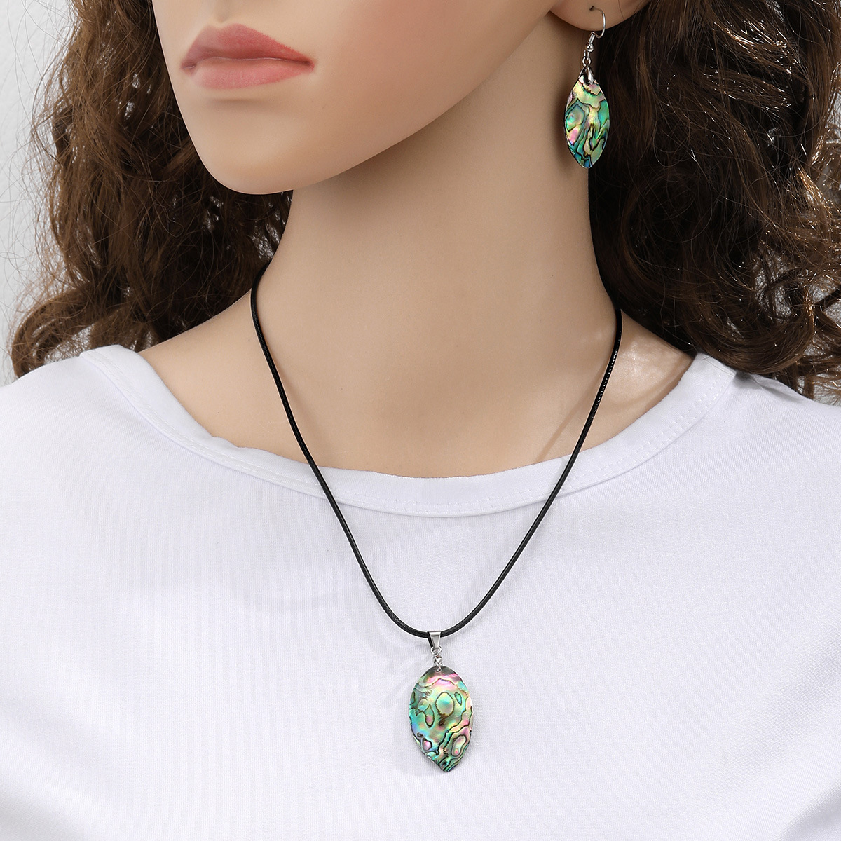 Parures de bijoux en coquillage, coquille d'ormeau, boucle d'oreille & collier, avec cordon en cuir & alliage de zinc, 2 pièces & styles différents pour le choix & pour femme, Vendu par fixé