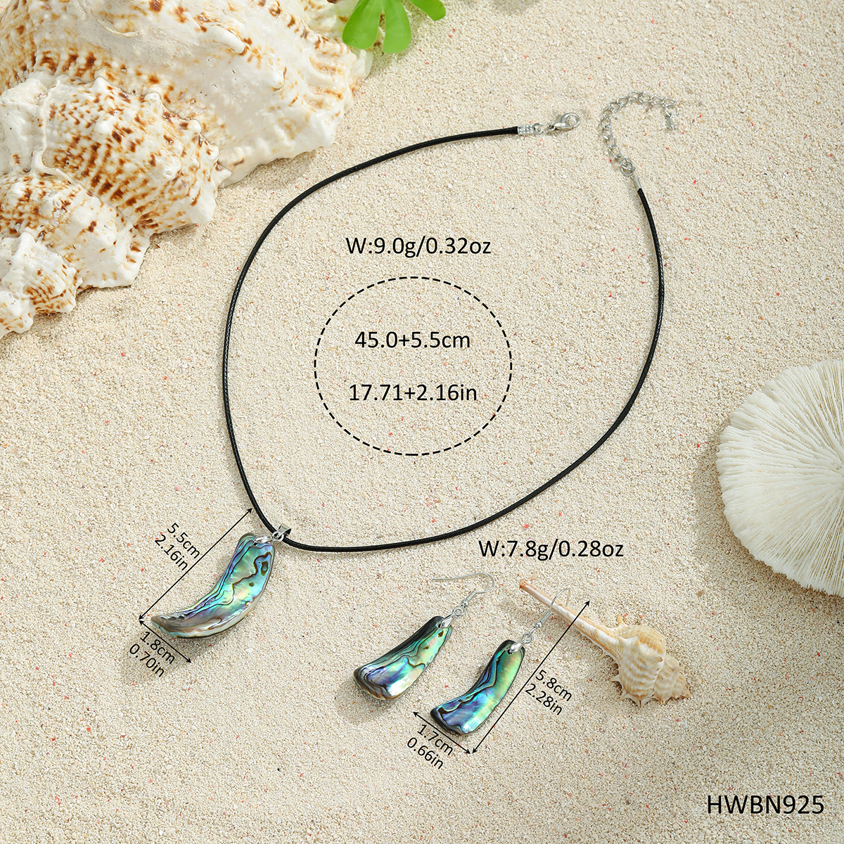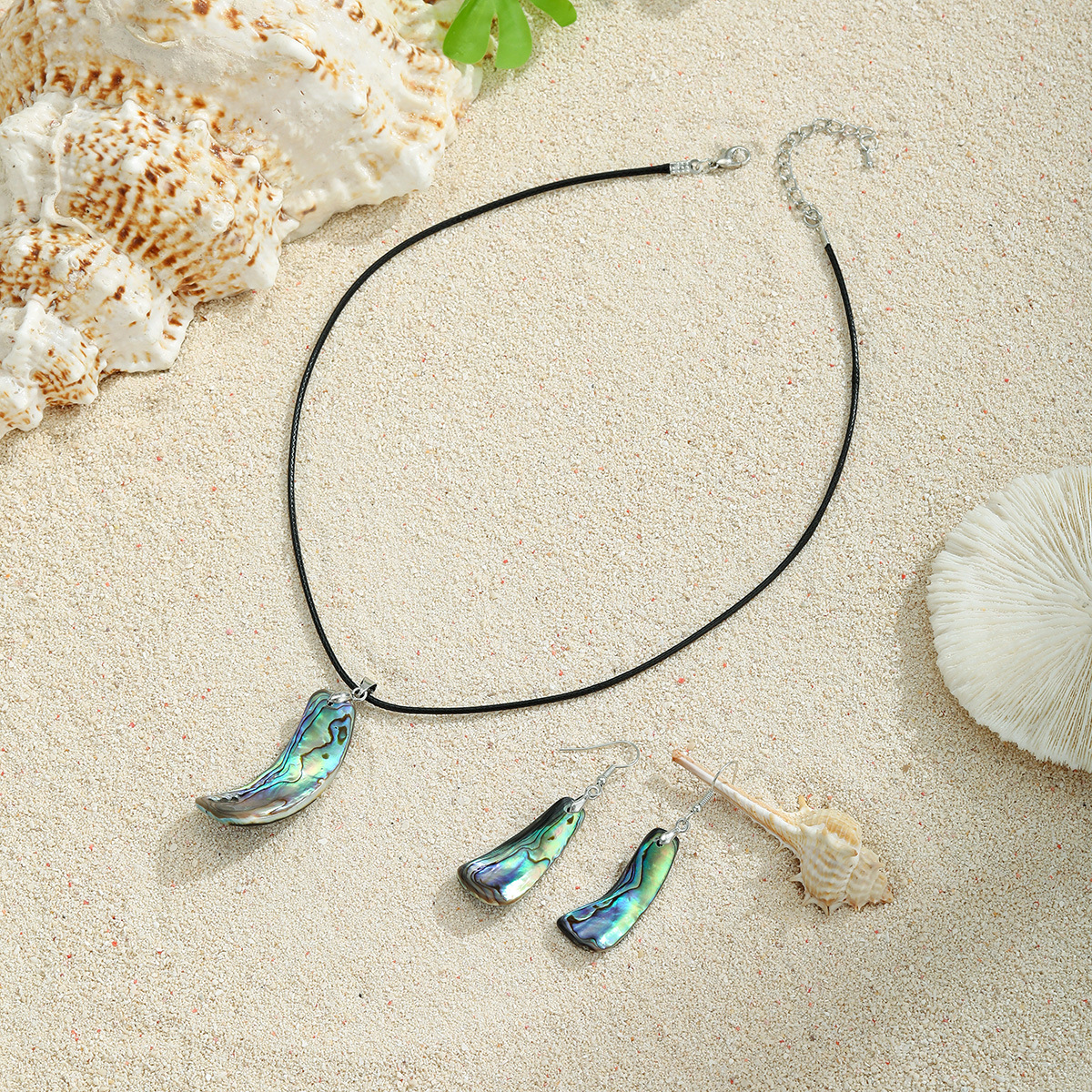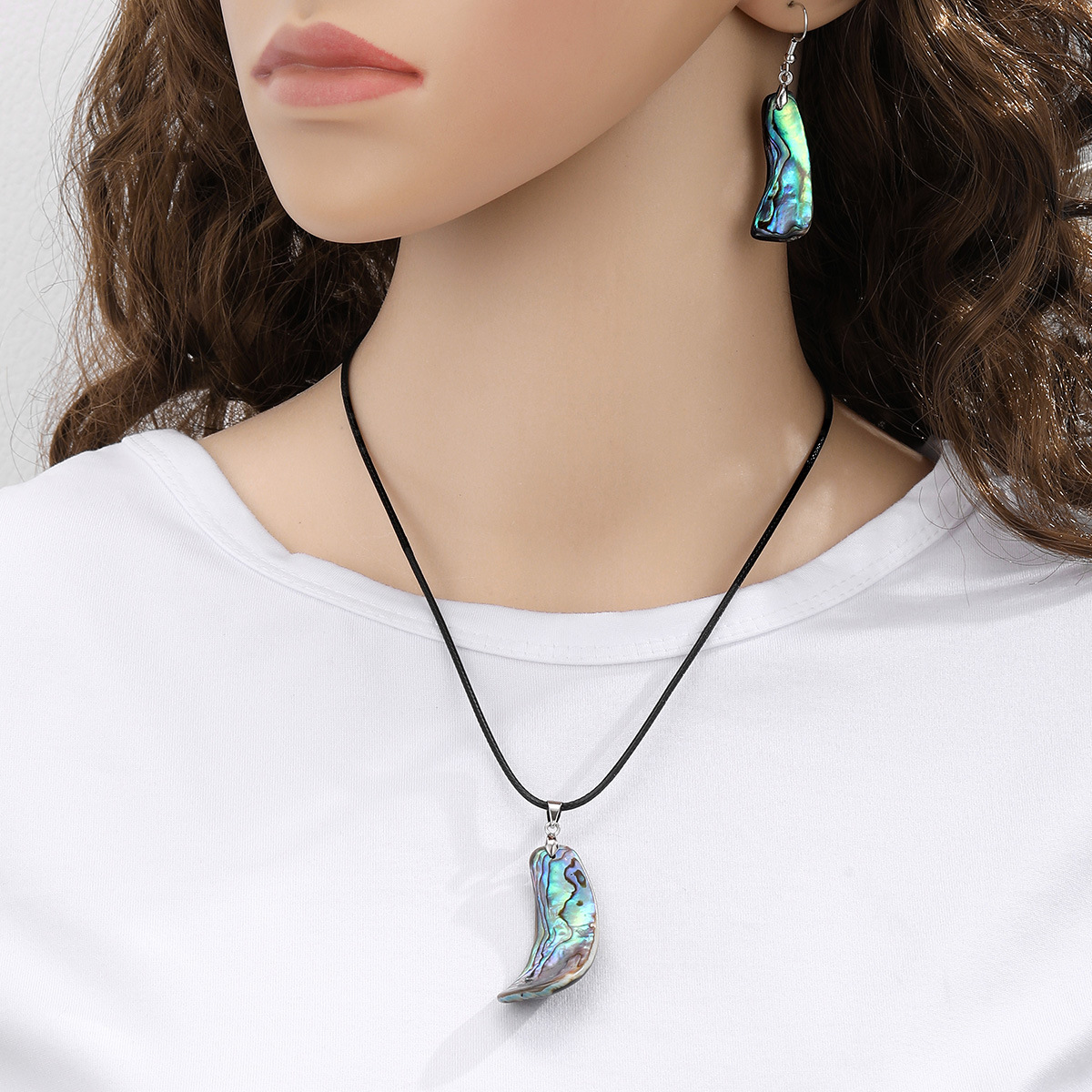 Parures de bijoux en coquillage, coquille d'ormeau, boucle d'oreille & collier, avec cordon en cuir & alliage de zinc, 2 pièces & styles différents pour le choix & pour femme, Vendu par fixé