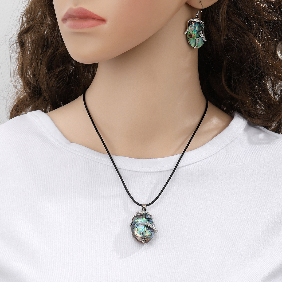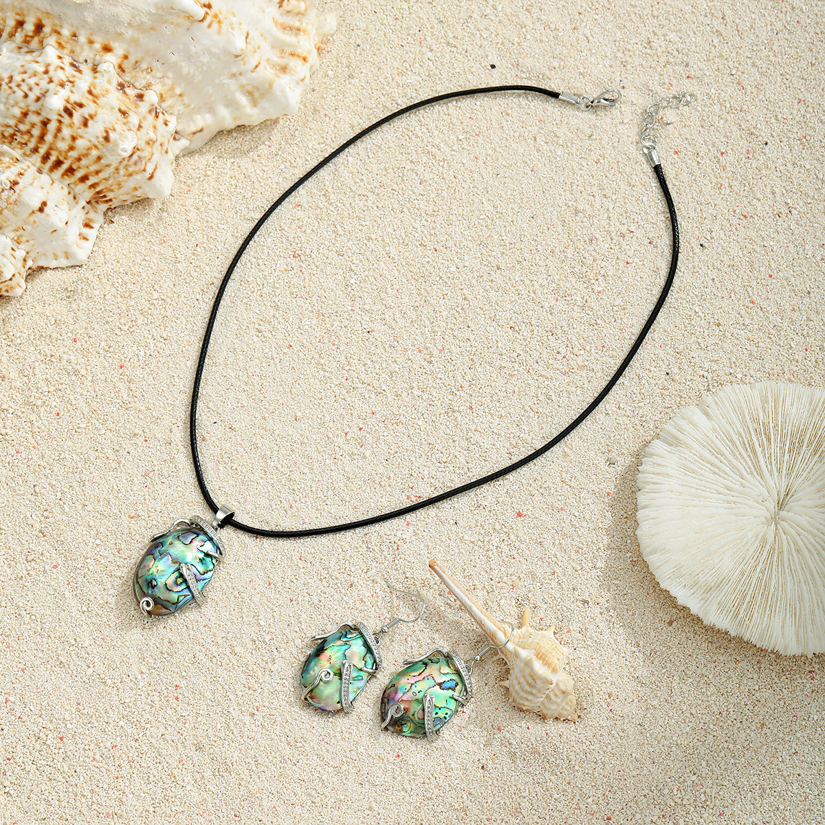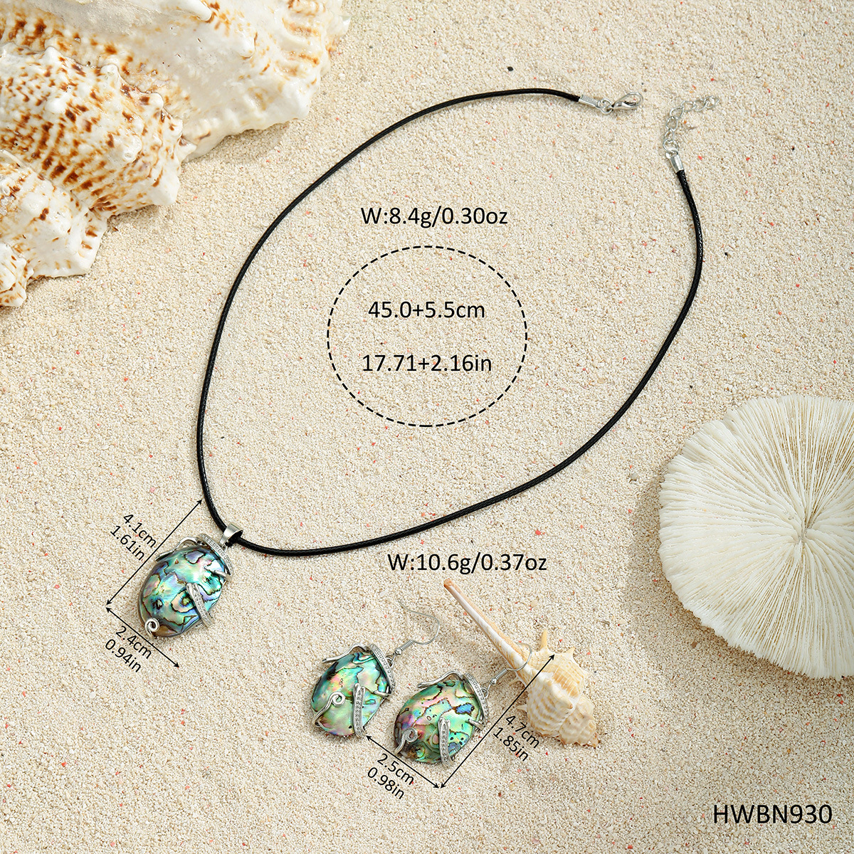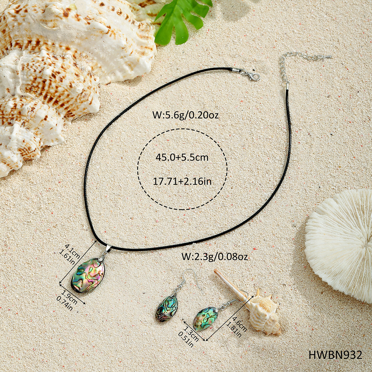 Parures de bijoux en coquillage, coquille d'ormeau, boucle d'oreille & collier, avec cordon en cuir & alliage de zinc, 2 pièces & styles différents pour le choix & pour femme, Vendu par fixé