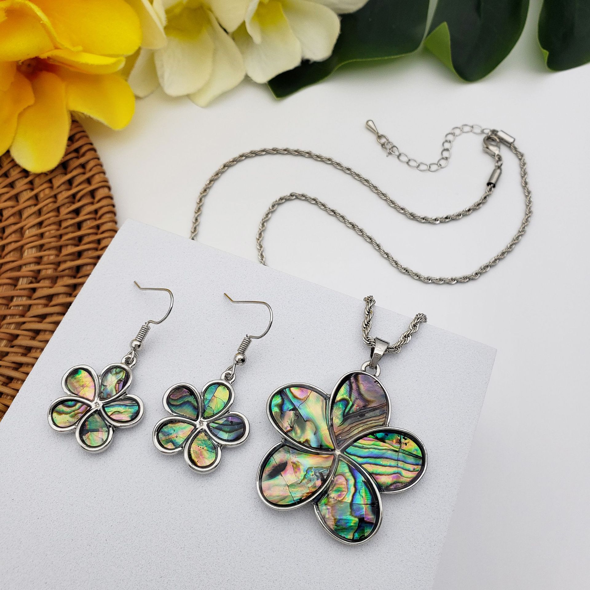 Parures de bijoux en coquillage, coquille d'ormeau, collier de chaîne de chandail & boucle d'oreille, avec chaîne de fer & alliage de zinc, fleur, Placage, 2 pièces & bijoux de mode & pour femme, plus de couleurs à choisir, Vendu par fixé