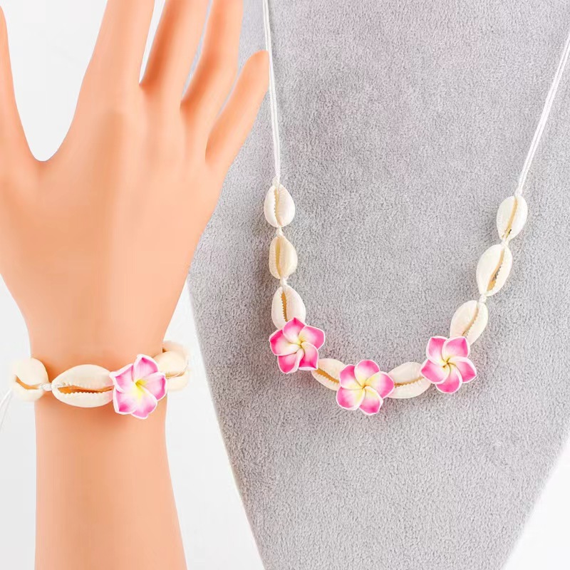 Parures de bijoux en coquillage, coquille, Bracelet & collier, avec argile de polymère & corde de cire, Placage de couleur d'or, bijoux de mode, plus de couleurs à choisir, Vendu par PC