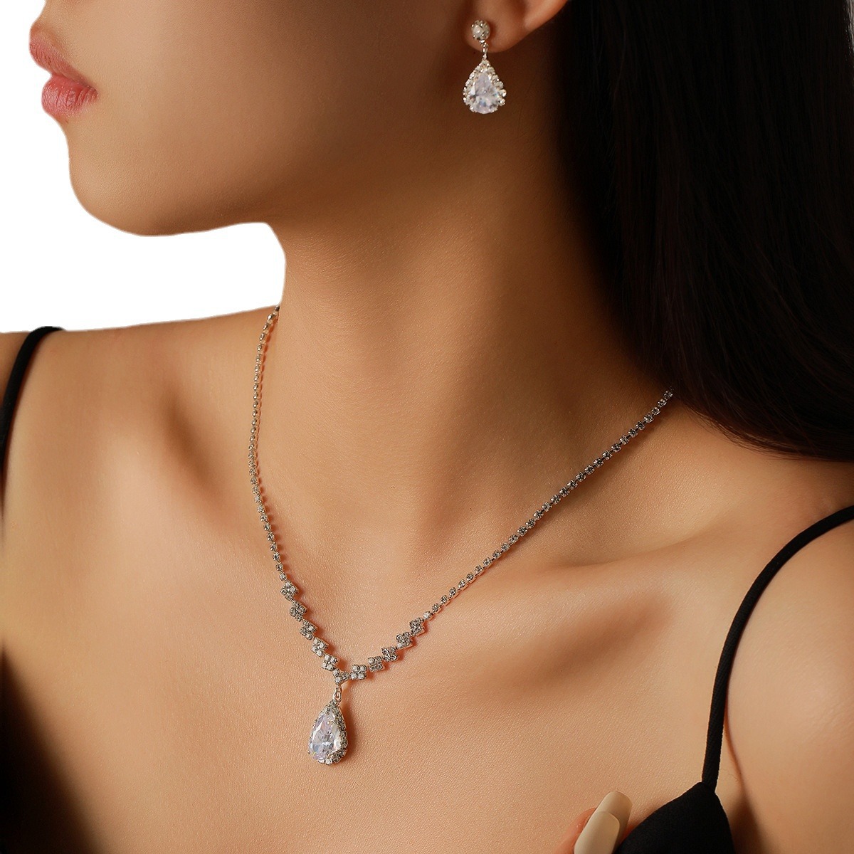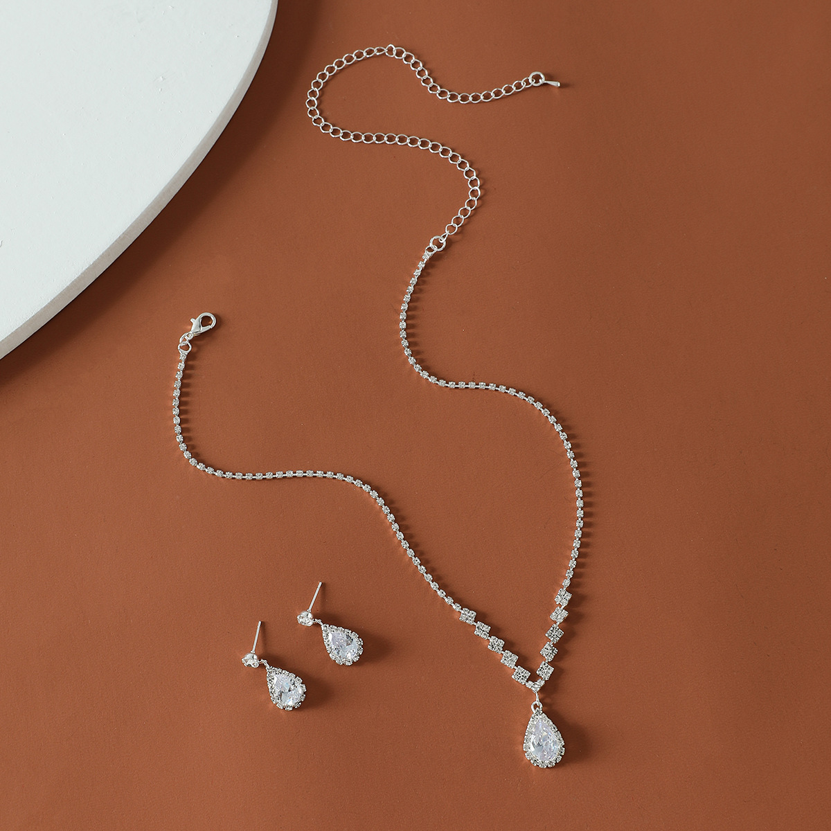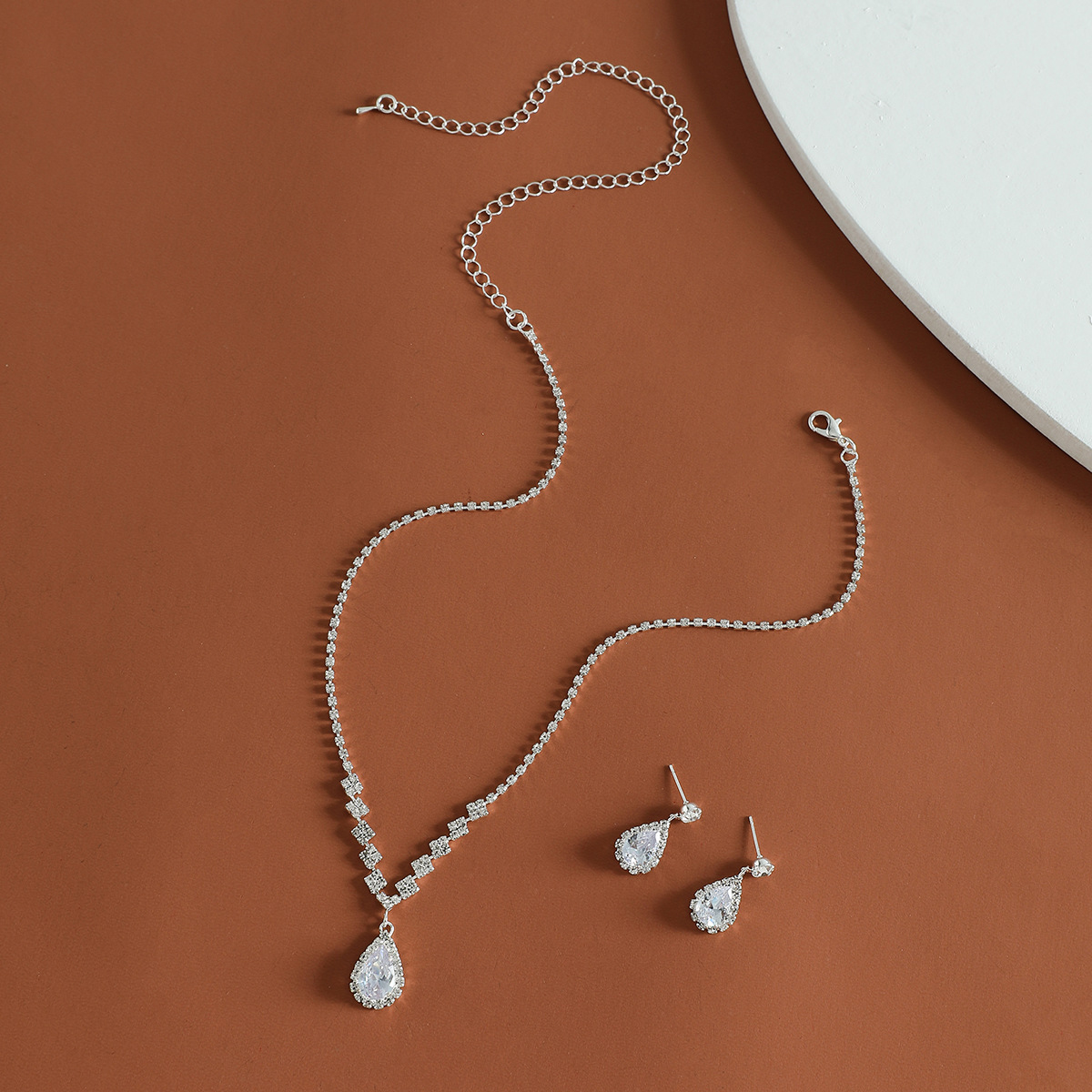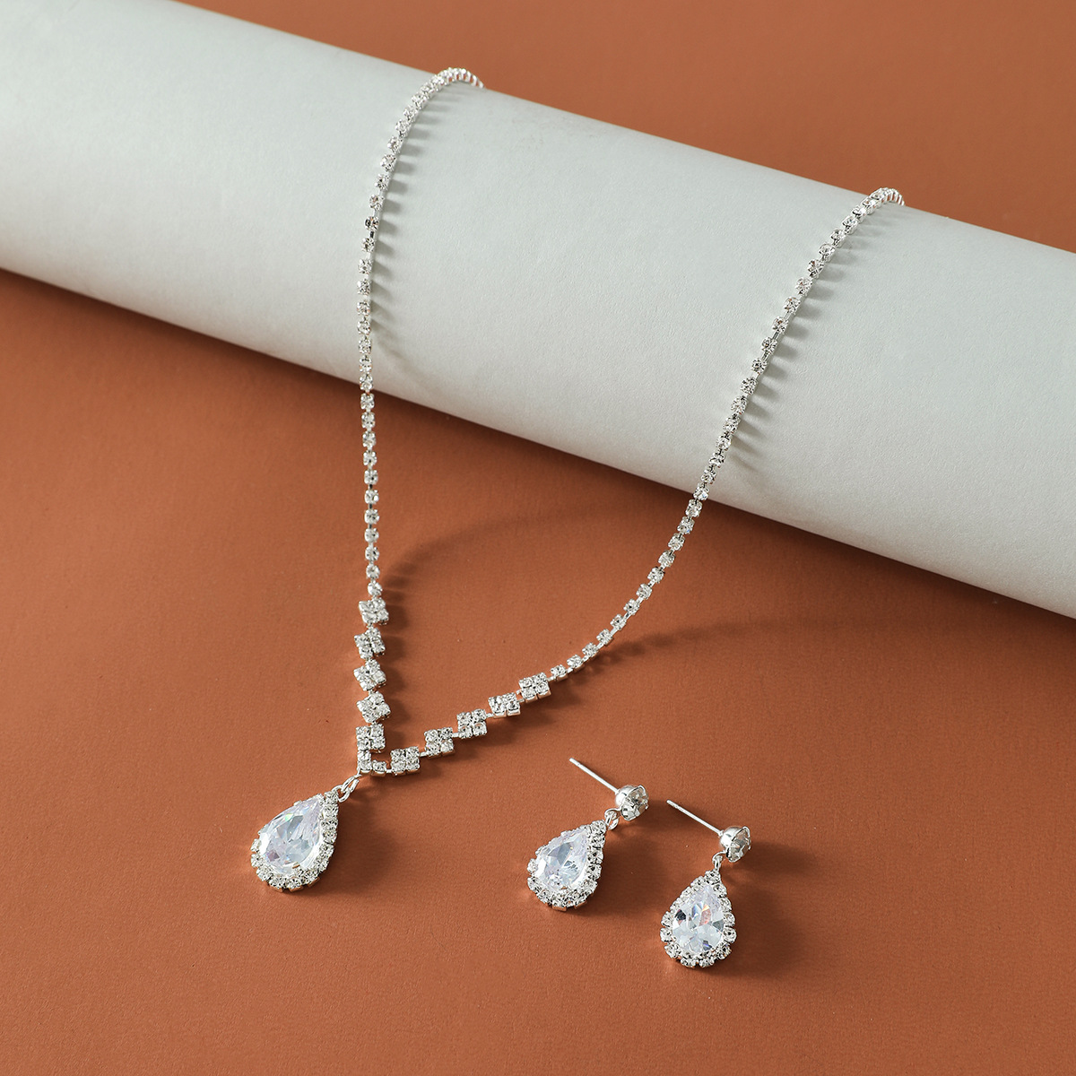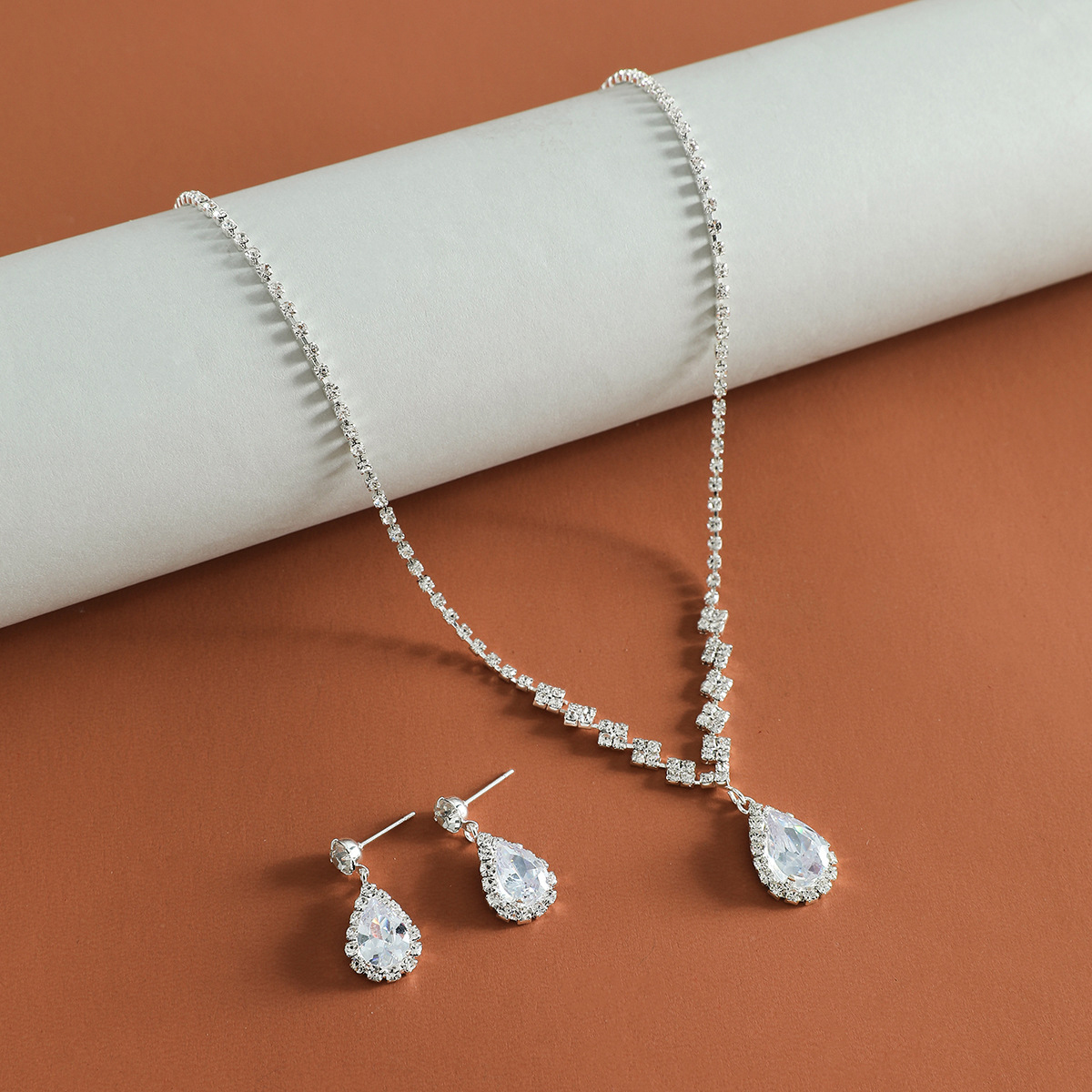 Parures de bijoux en cristal, alliage de zinc, Boucle d’oreille stud & collier, avec cristal, Placage, 2 pièces & bijoux de mode & pour femme, argent, Longueur:Environ 41-50 cm, Vendu par fixé