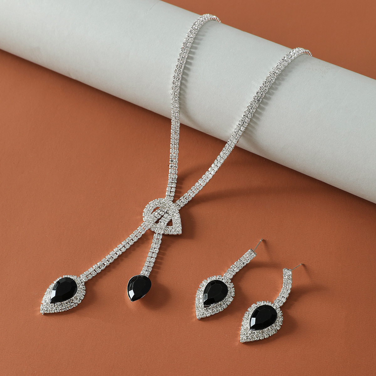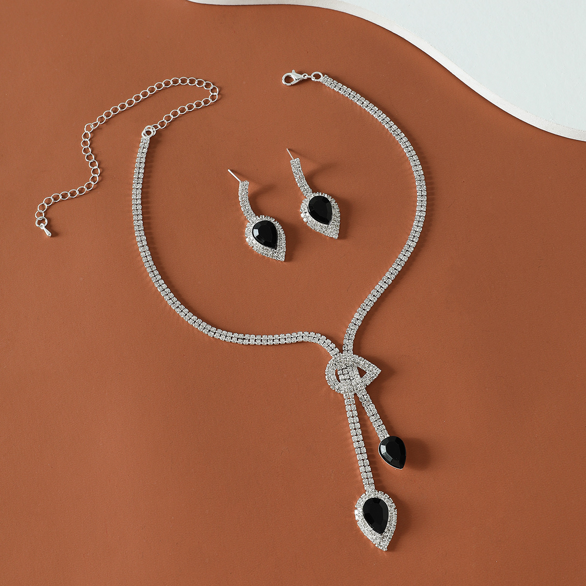 Parures de bijoux en cristal, alliage de zinc, boucle d'oreille & collier, avec cristal, acier inoxydable puce boucle d'oreille, avec 4.5cm chaînes de rallonge, Placage de couleur noire de plumbum, pour femme & émail, sans plomb et cadmium, 14cm Environ 18.8 pouce, Vendu par fixé