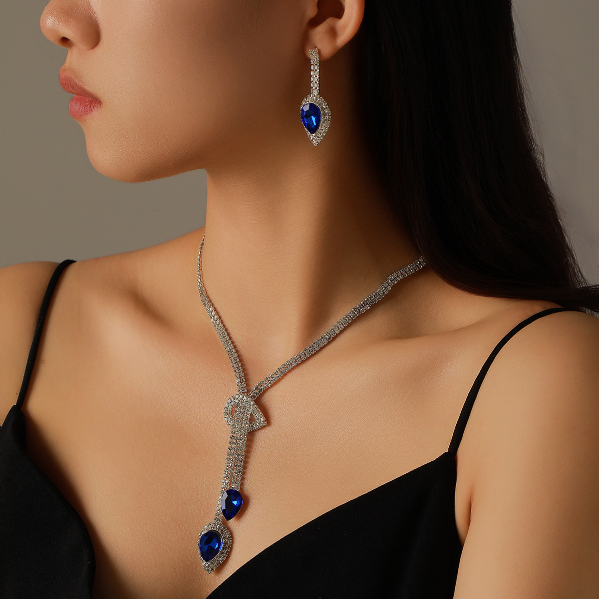 Parures de bijoux en cristal, alliage de zinc, Boucle d’oreille stud & collier, avec cristal, 2 pièces & bijoux de mode & pour femme, plus de couleurs à choisir, Longueur:Environ 41-50 cm, Vendu par fixé