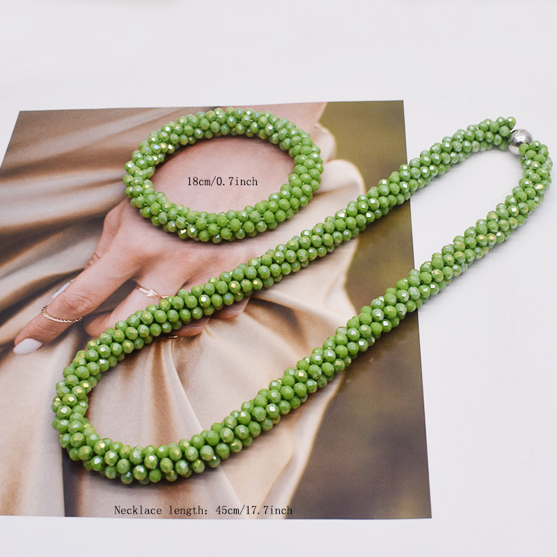 Parures de bijoux en cristal, Bracelet & collier, avec corde en nylon & alliage de zinc, Placage de couleur platine, fait à la main & réglable & facettes 32inch,8inch pouce, Vendu par fixé