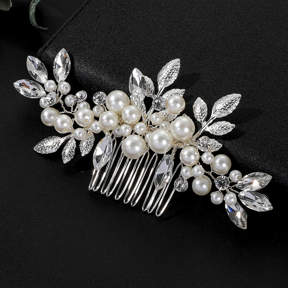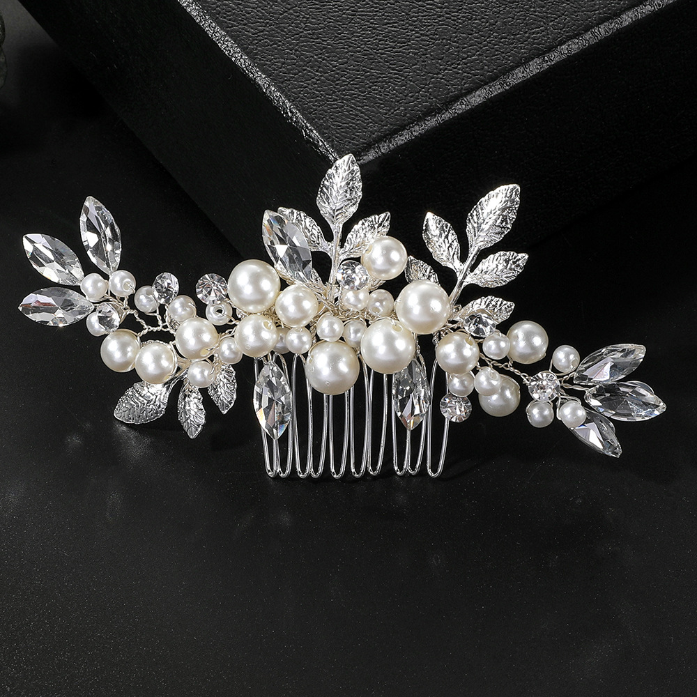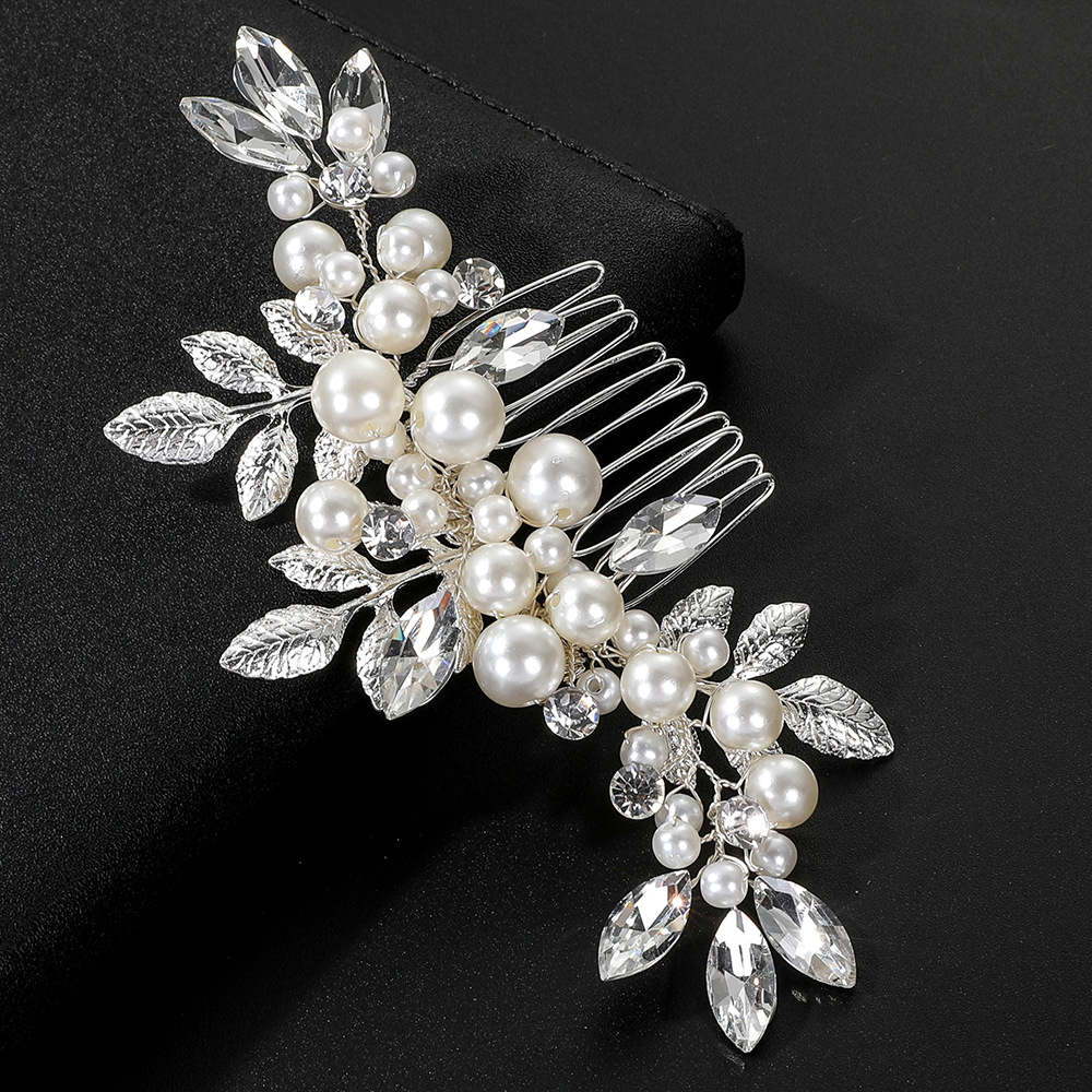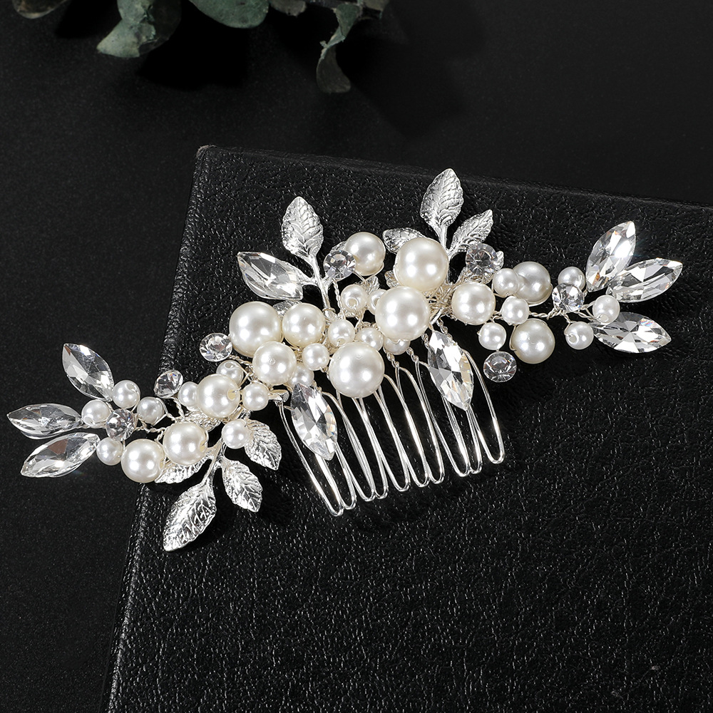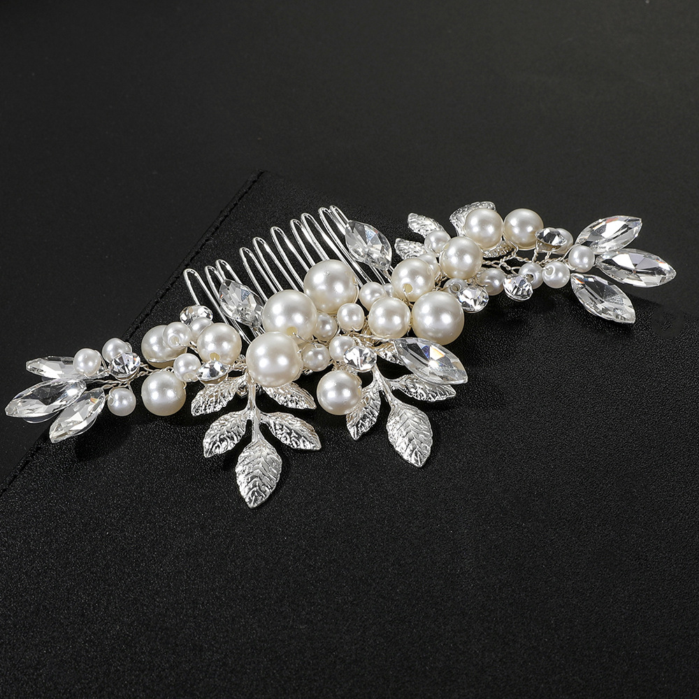 Peignes décoratifs, alliage de zinc, avec fil en laiton & cristal & perle de plastique, fait à la main, bijoux de mode & pour femme, argent, 120x70x5mm, Vendu par PC