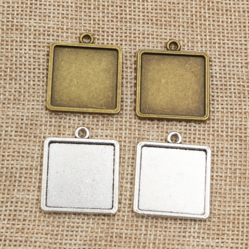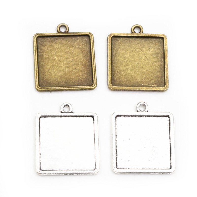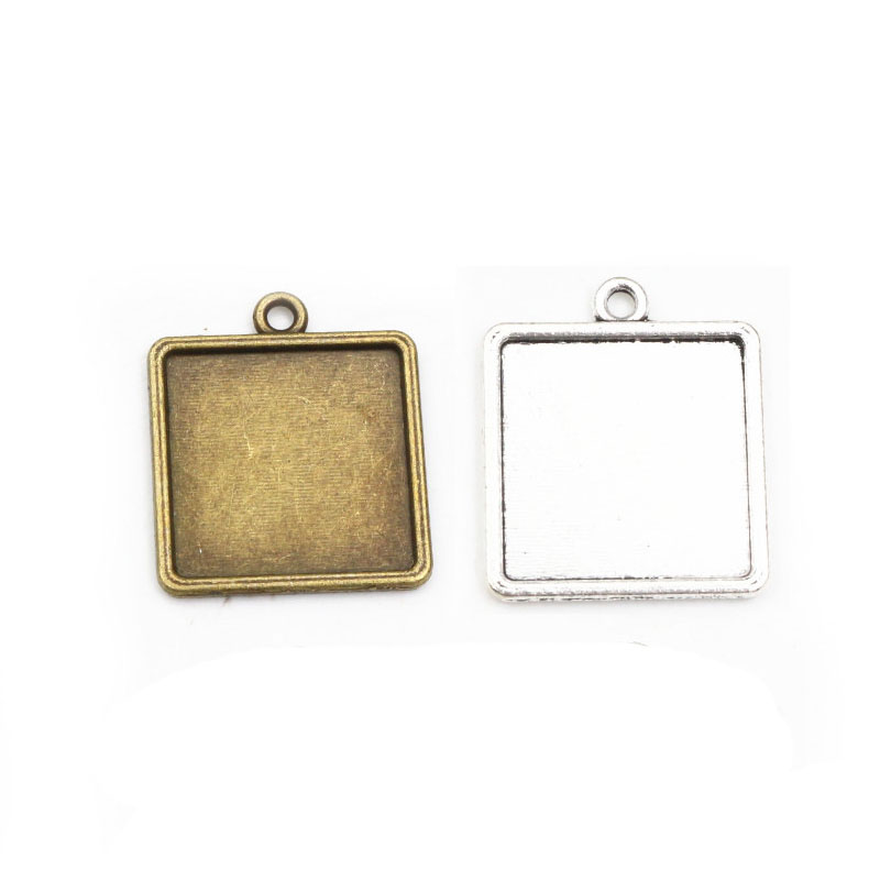 Pendantif en Alliage de zinc , Carré, Placage, DIY, plus de couleurs à choisir, inner diameter:25mm, Environ 100PC/sac, Vendu par sac