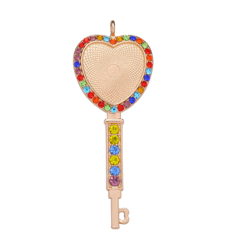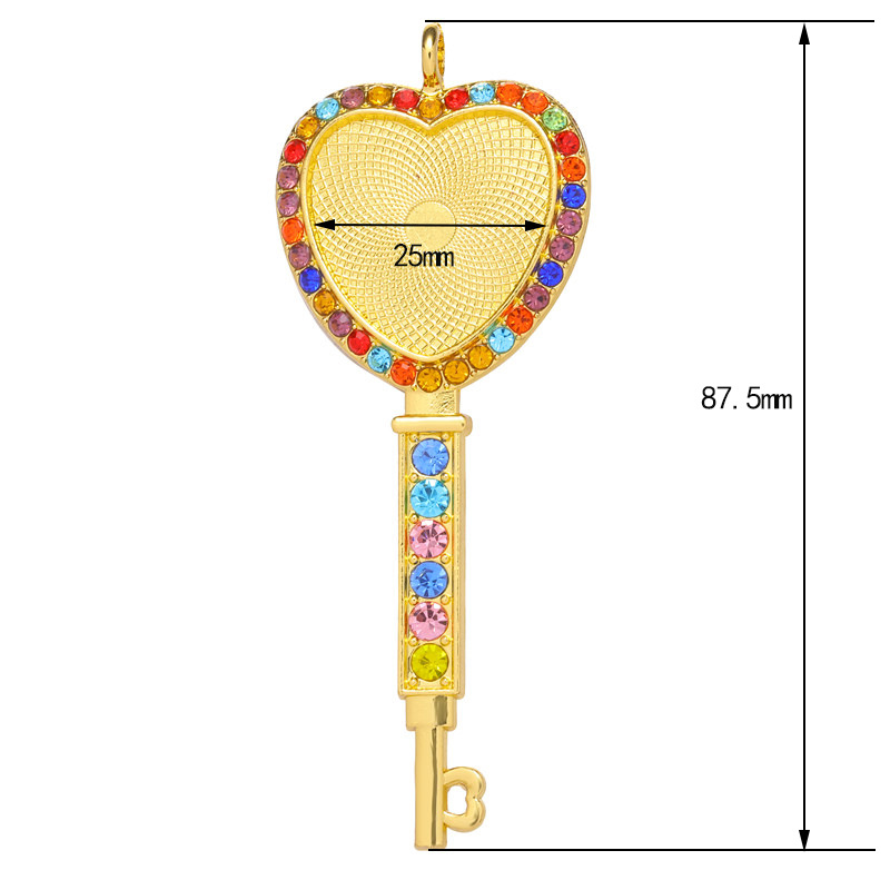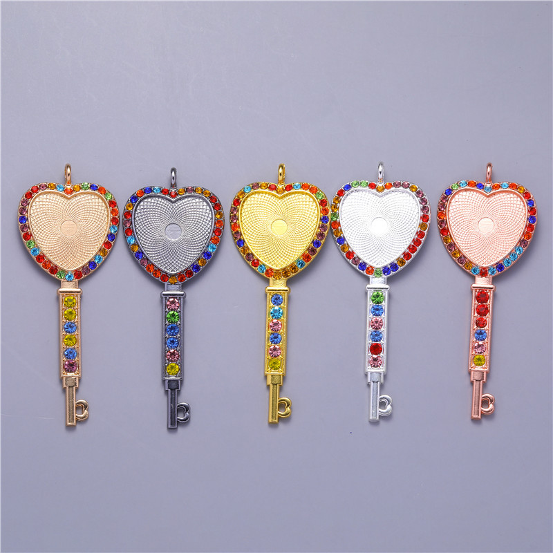 Pendantif en Alliage de zinc  , Coeur et clé, Placage, DIY & avec strass, plus de couleurs à choisir, 25mm, Vendu par PC