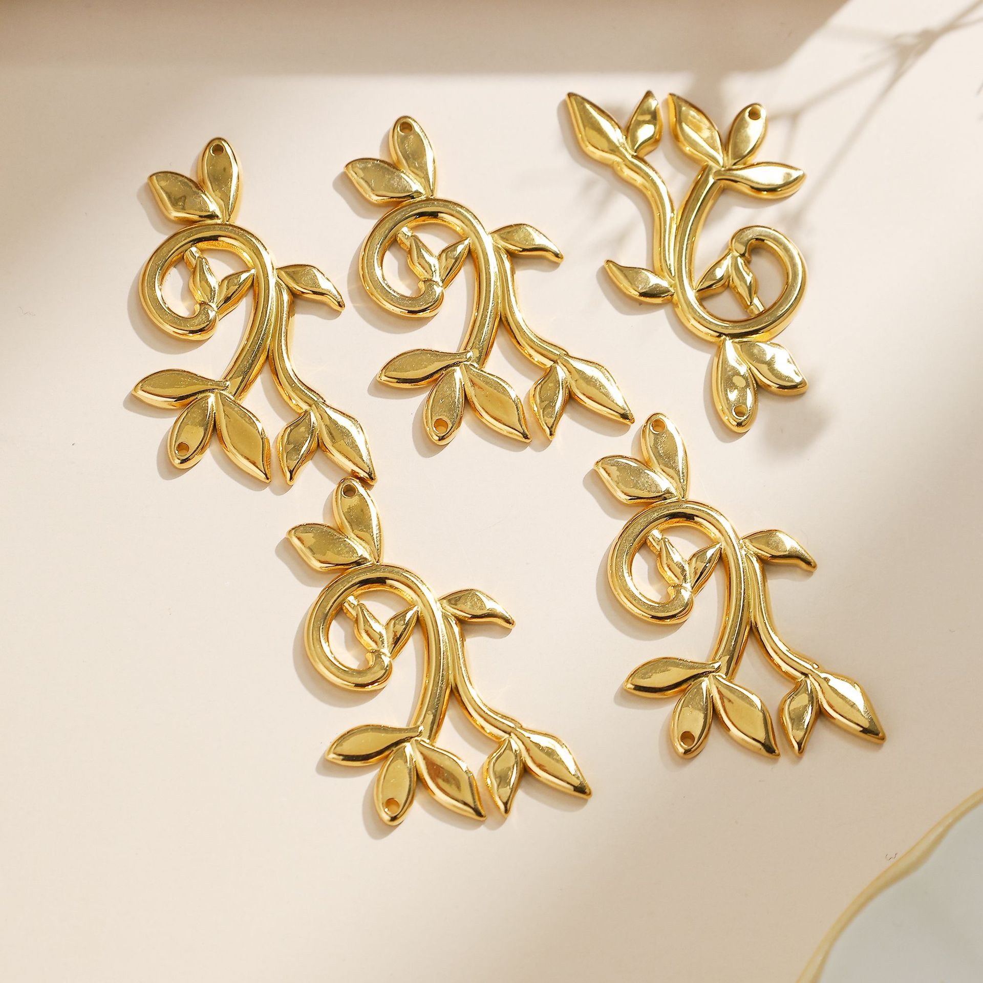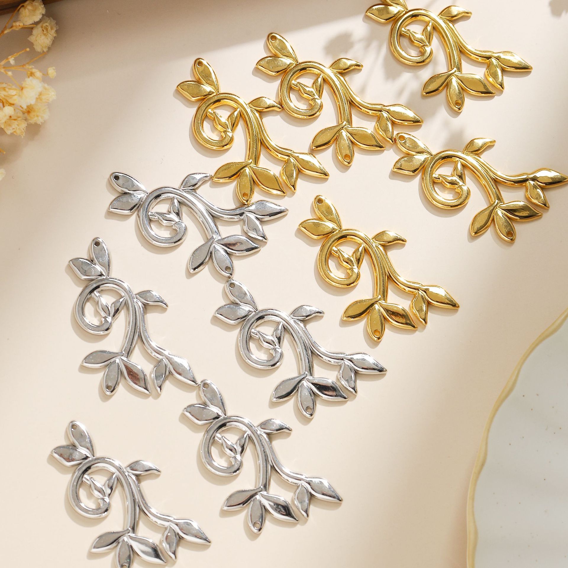 Pendentif Feuille en acier inoxydable, Acier inoxydable 304, Placage ionique sous vide, DIY, plus de couleurs à choisir, 45x25mm, 10PC/sac, Vendu par sac