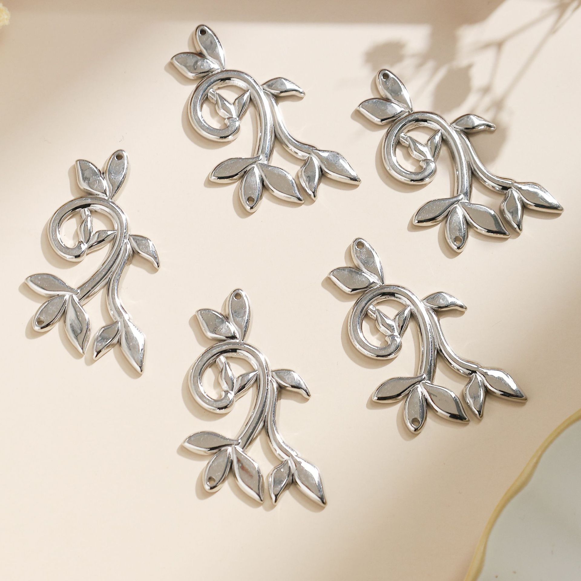 Pendentif Feuille en acier inoxydable, couleur originale Environ 1mm Vendu par sac