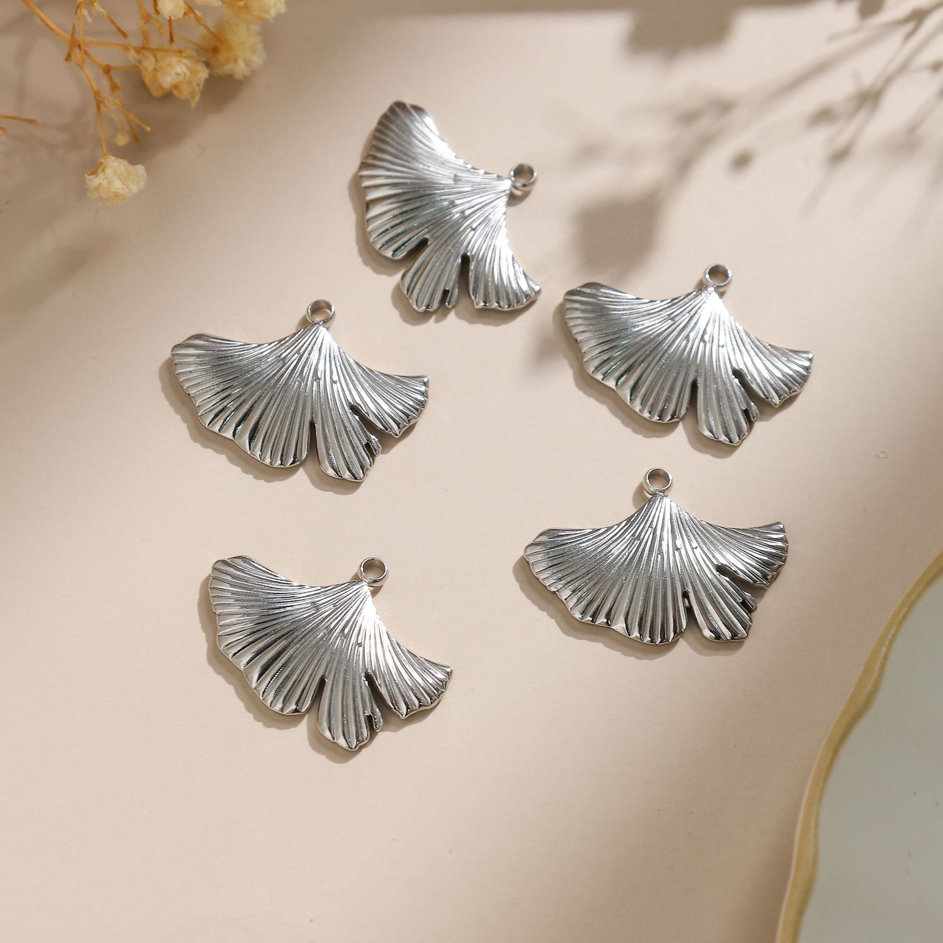 Pendentif Feuille en acier inoxydable, Ginkgo Feuille, couleur originale Environ 1mm, Vendu par PC