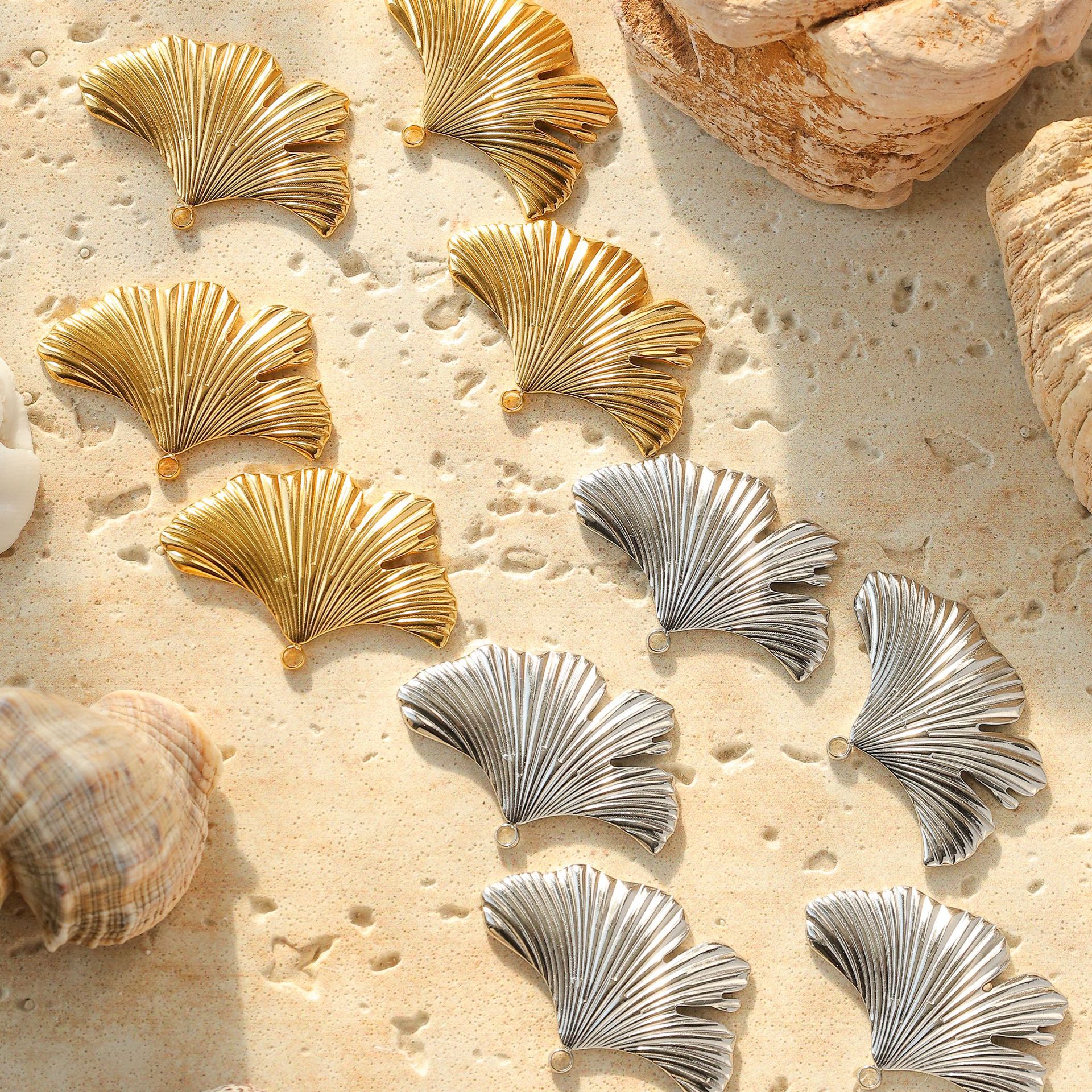 Pendentif Feuille en acier inoxydable, Acier inoxydable 304, Ginkgo Feuille, Placage ionique sous vide, DIY, plus de couleurs à choisir, 35x24mm, 10PC/sac, Vendu par sac