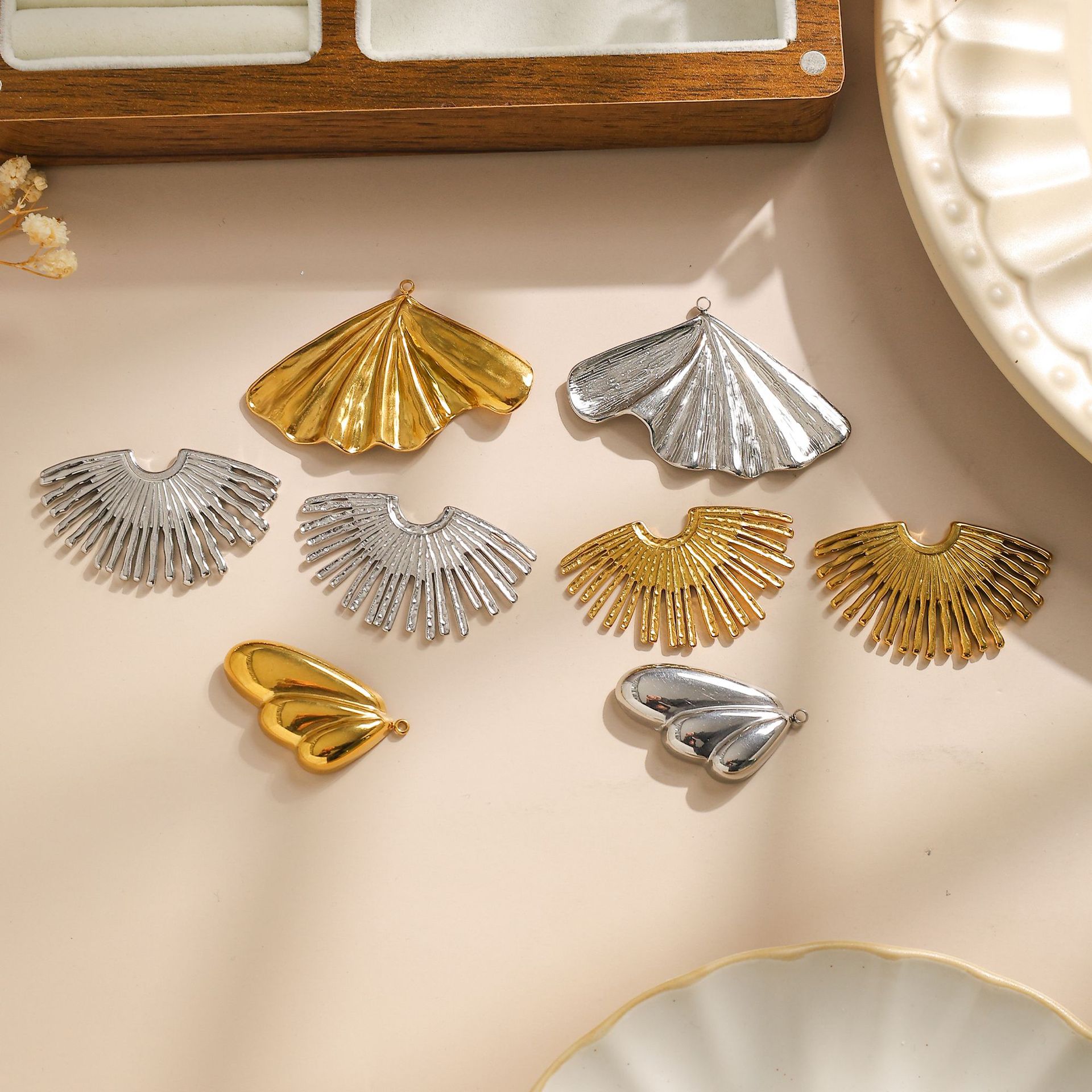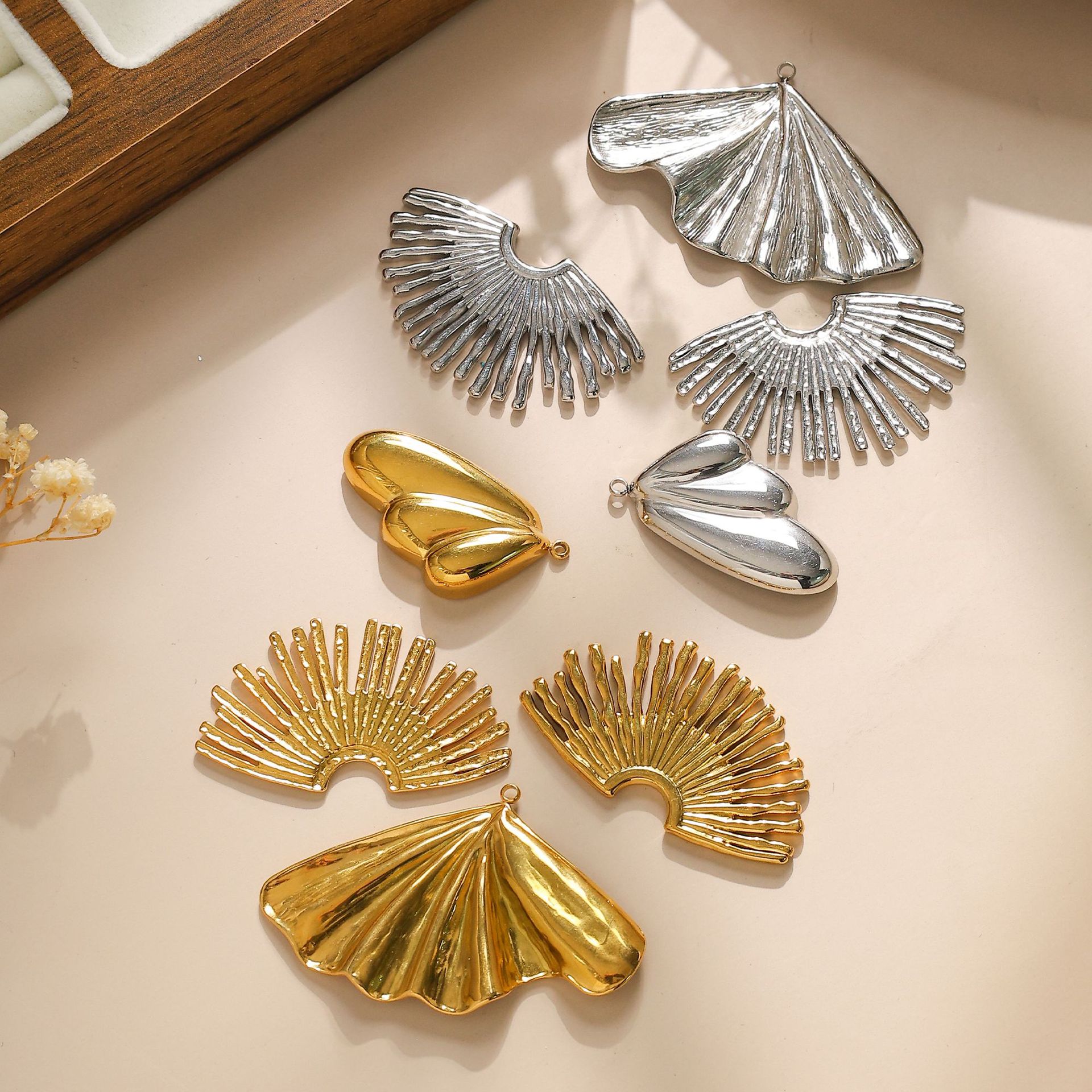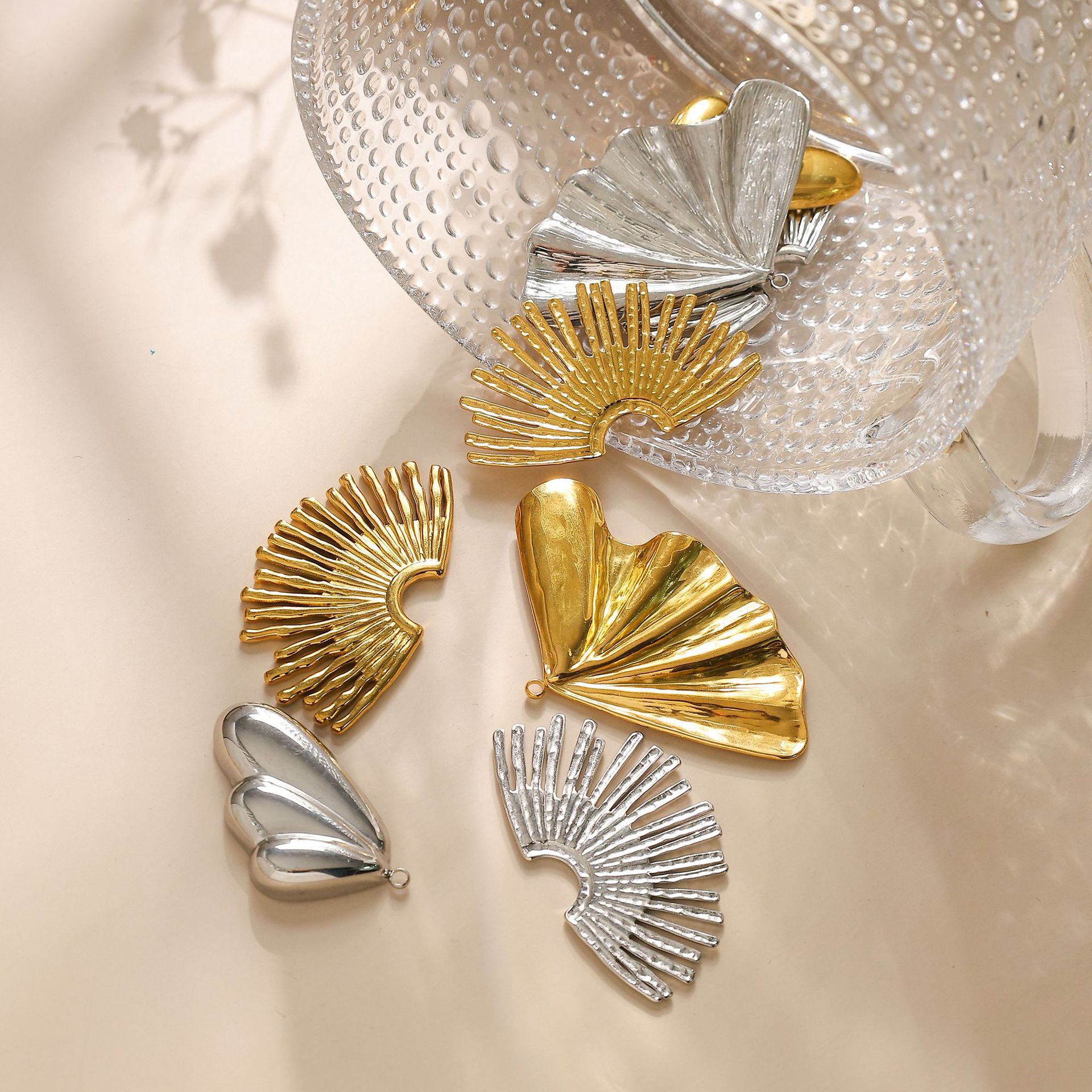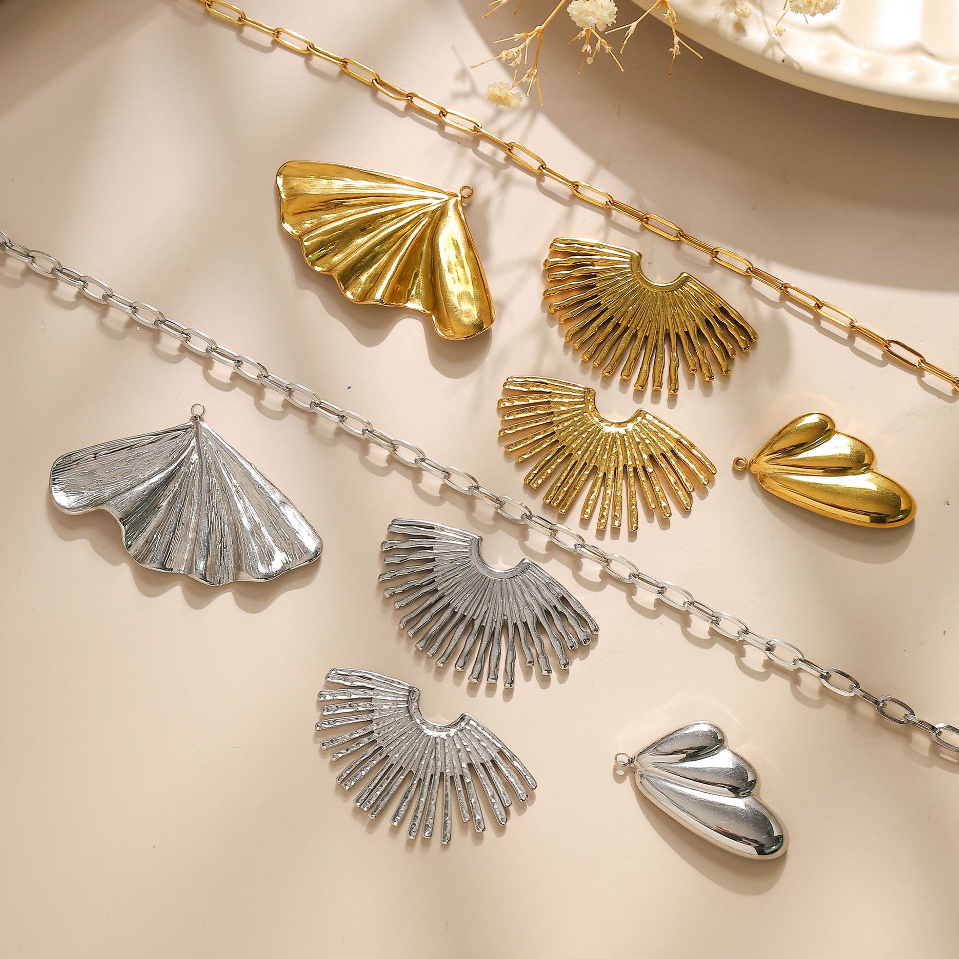 Pendentif Feuille en acier inoxydable, Ginkgo Feuille, couleur originale Environ 1mm, Vendu par PC