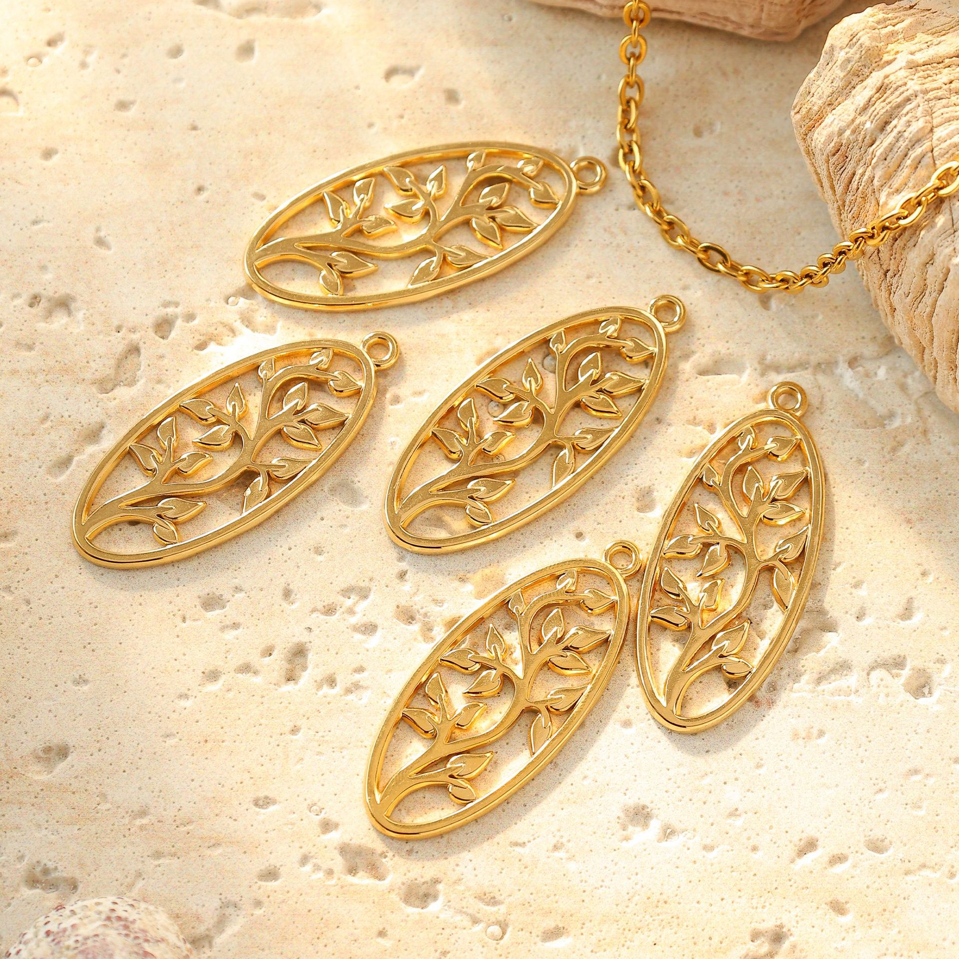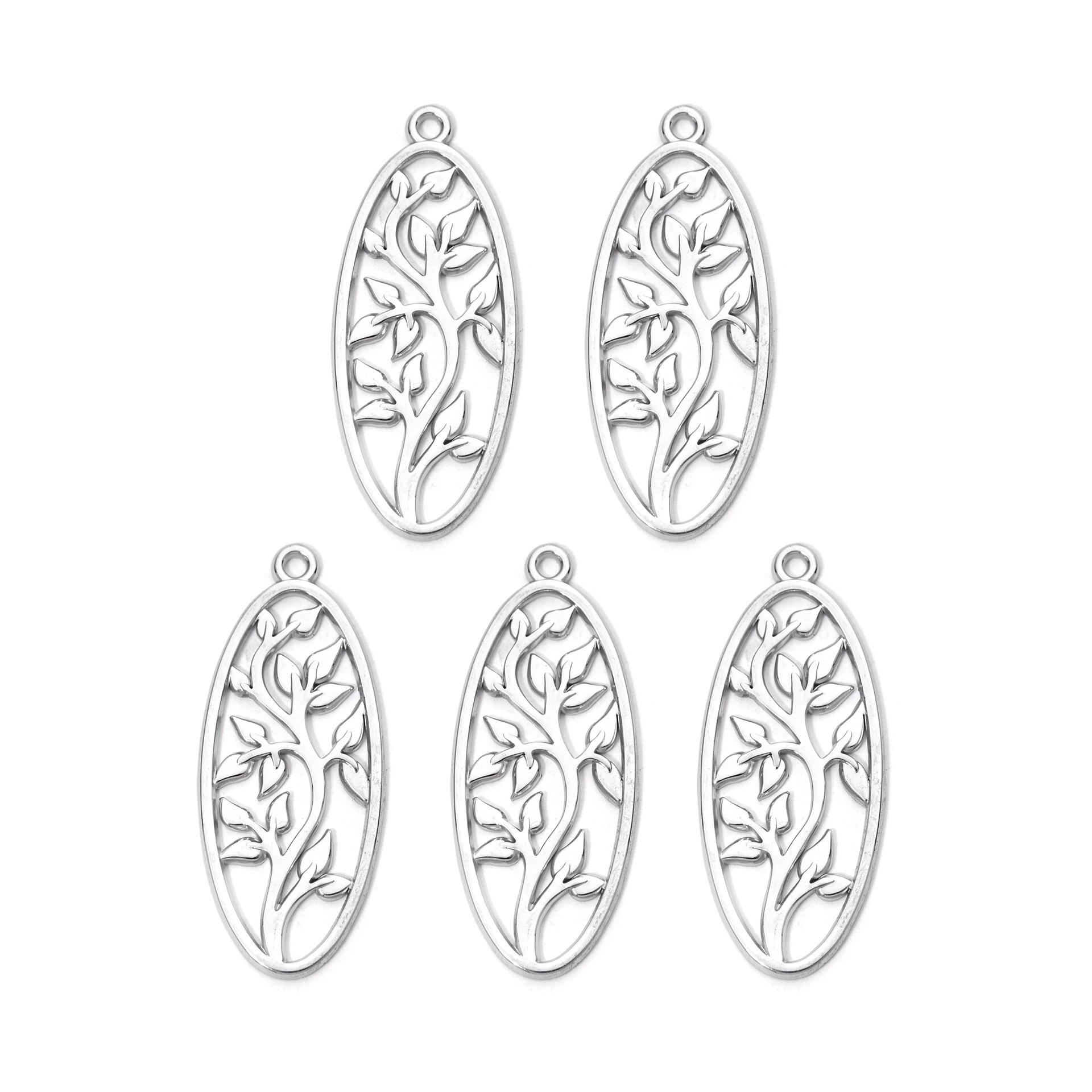 Pendentif Feuille en acier inoxydable, Acier inoxydable 304, Placage ionique sous vide, DIY & creux, plus de couleurs à choisir, 17x40mm, 10PC/sac, Vendu par sac