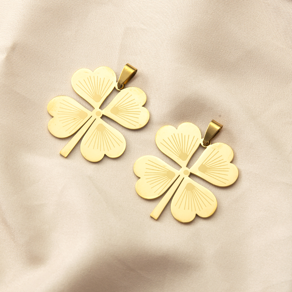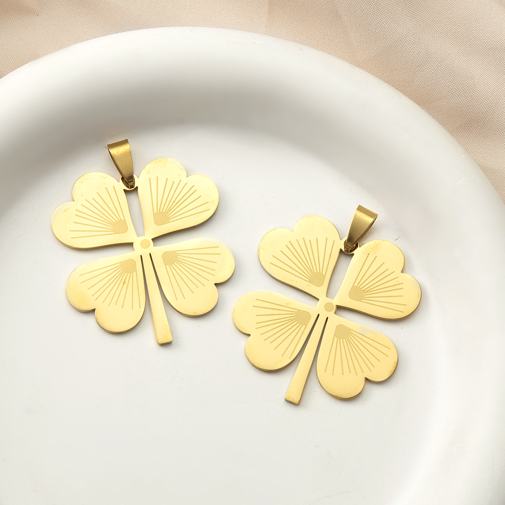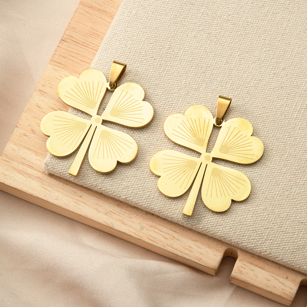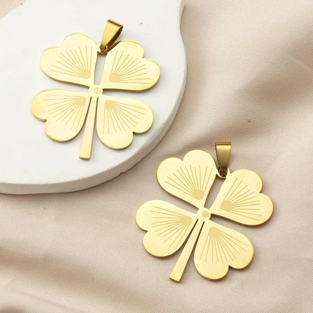 Pendentif Feuille en acier inoxydable, Acier inoxydable 304, Trèfle à quatre feuilles, Placage de couleur d'or, DIY, doré, 36x1.34x46.64mm, Vendu par PC