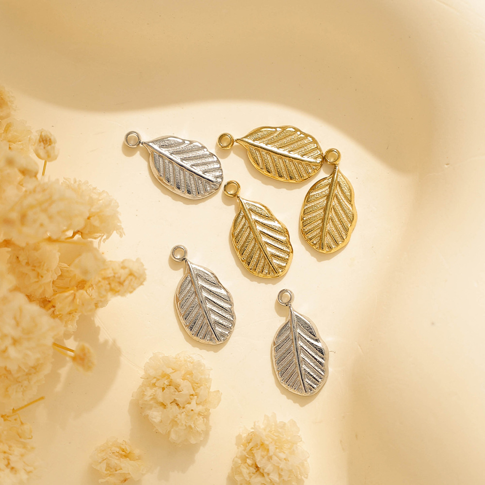 Pendentif Feuille en acier inoxydable, Acier inoxydable 304, Placage, DIY, plus de couleurs à choisir, 10PC/sac, Vendu par sac