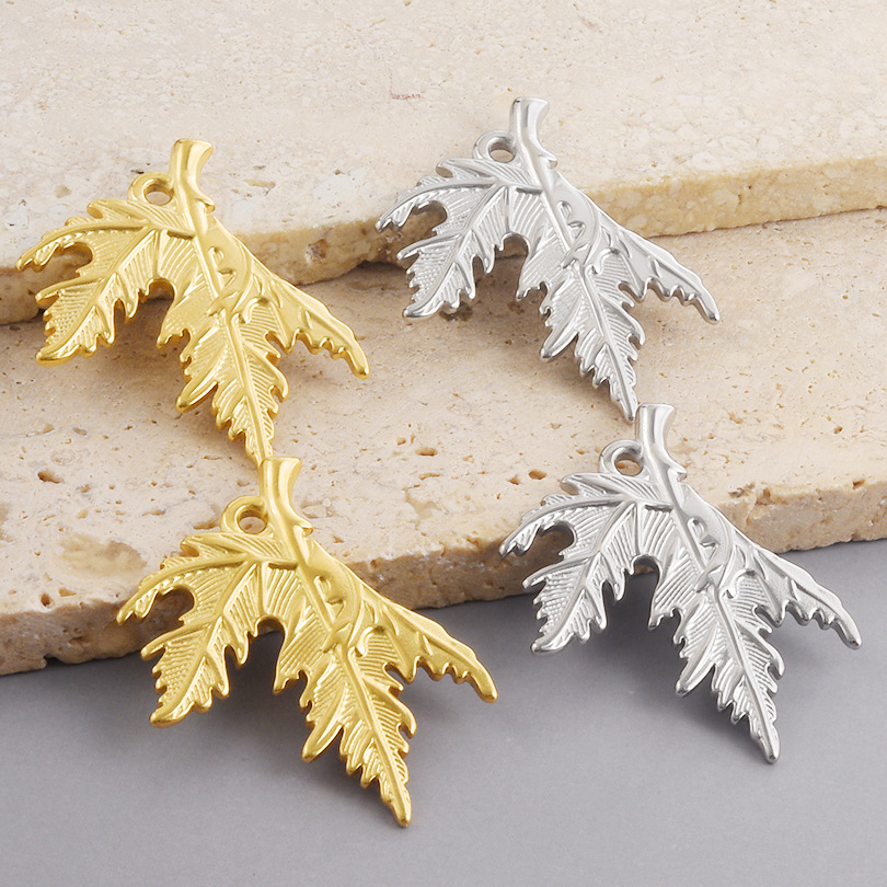 Pendentif Feuille en acier inoxydable, couleur originale Environ 1mm Vendu par sac