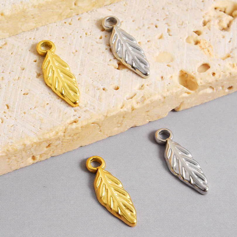 Pendentif Feuille en acier inoxydable, Acier inoxydable 304, Placage, DIY, plus de couleurs à choisir, 10PC/sac, Vendu par sac