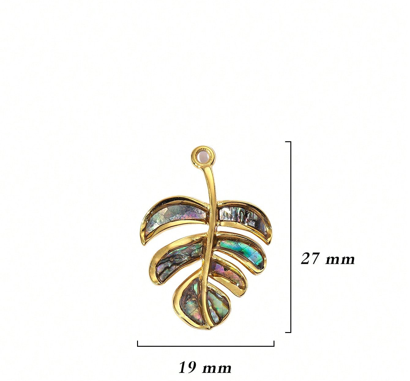 Pendentif Feuille en acier inoxydable, Acier inoxydable 304, avec coquille, Placage, DIY, plus de couleurs à choisir, 10PC/sac, Vendu par sac