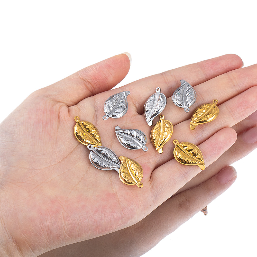 Pendentif Feuille en acier inoxydable, Acier inoxydable 316, Placage, DIY, plus de couleurs à choisir, 10PC/sac, Vendu par sac