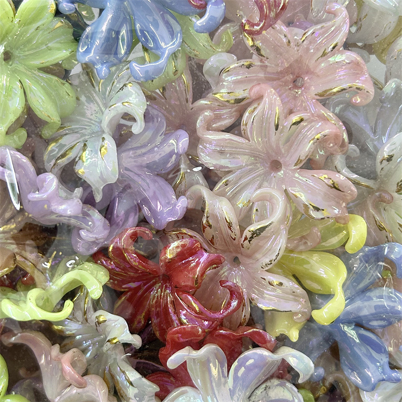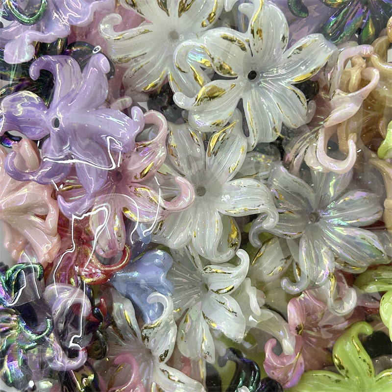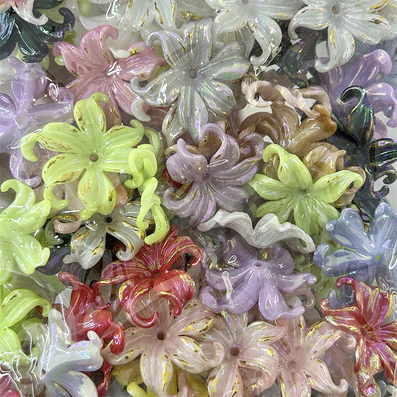 Pendentif bijoux acrylique, fleur, DIY, couleurs mélangées, 43mm, Vendu par PC