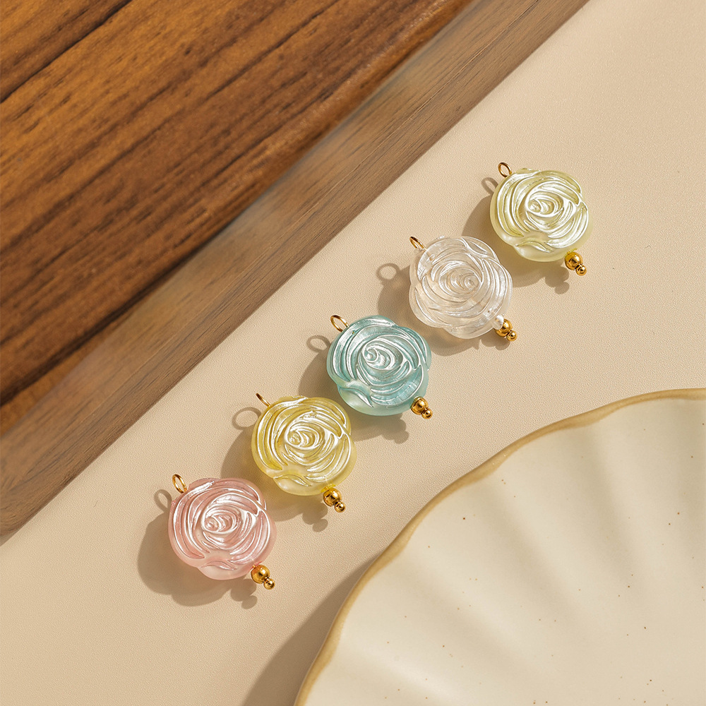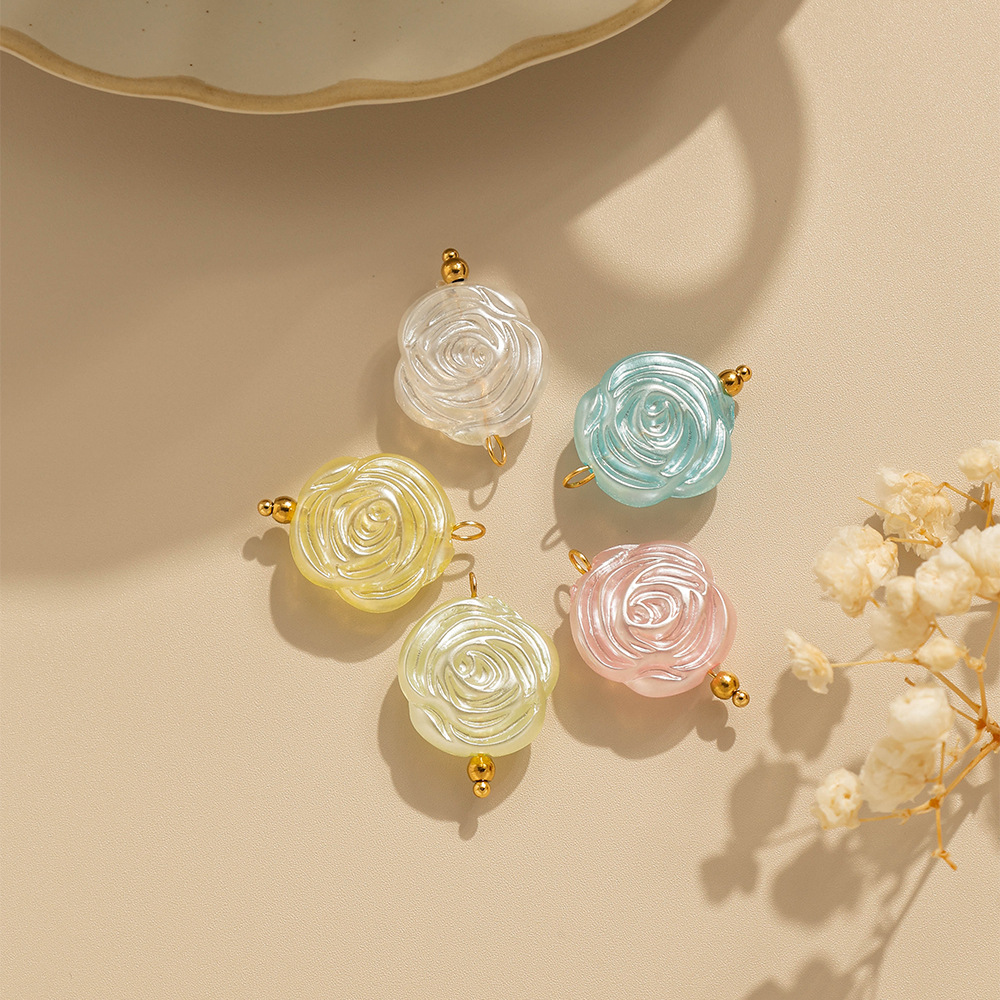 Pendentif bijoux acrylique, Acier inoxydable 304, avec Acrylique, fleur, Placage de couleur d'or, DIY, plus de couleurs à choisir, 10PC/sac, Vendu par sac