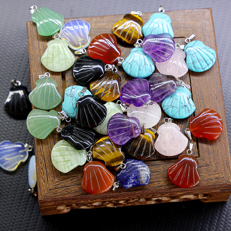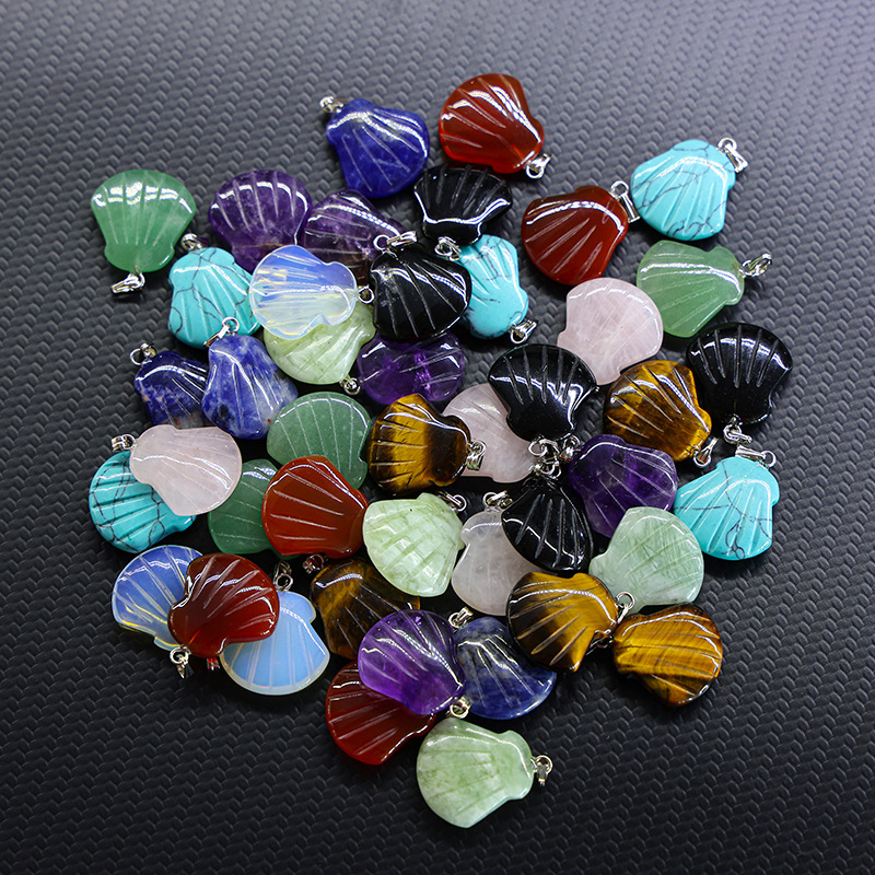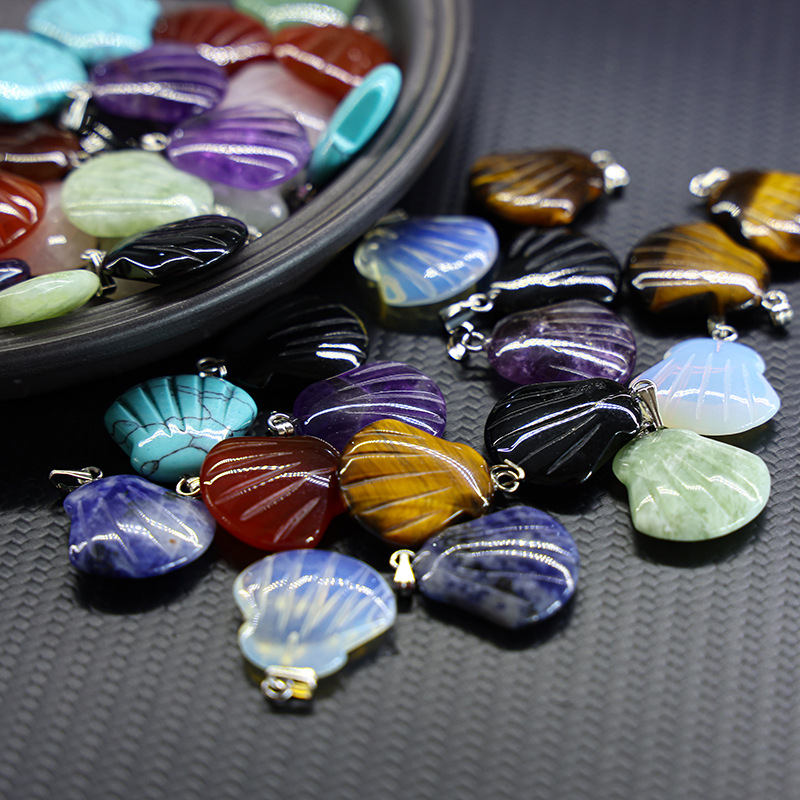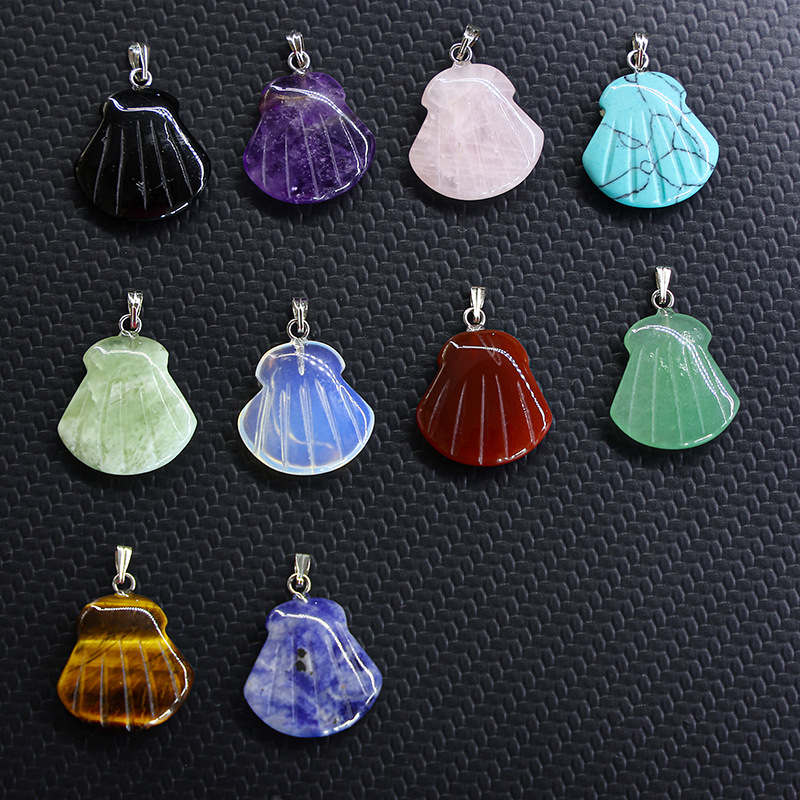 Pendentif bijoux de pierre gemme, avec fer & Acier inoxydable 304, coquille, gravé, DIY, plus de couleurs à choisir, 20x20x5mm, Vendu par PC
